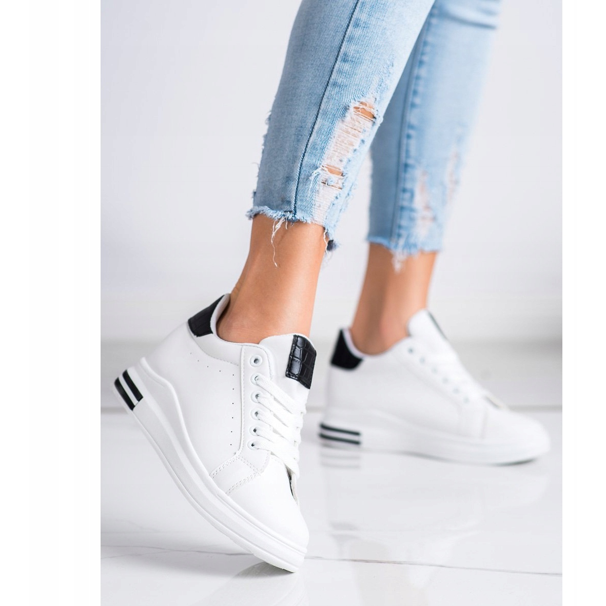 Graças à cunha oculta de 5 centímetros, ganhará alguns centímetros de altura, o que irá realçar a sua figura sem sacrificar o conforto. Os tênis brancos com inserções pretas se enquadram perfeitamente nas tendências atuais, permitindo combiná-los facilmente com diversas peças de roupa - de jeans a vestidos arejados.