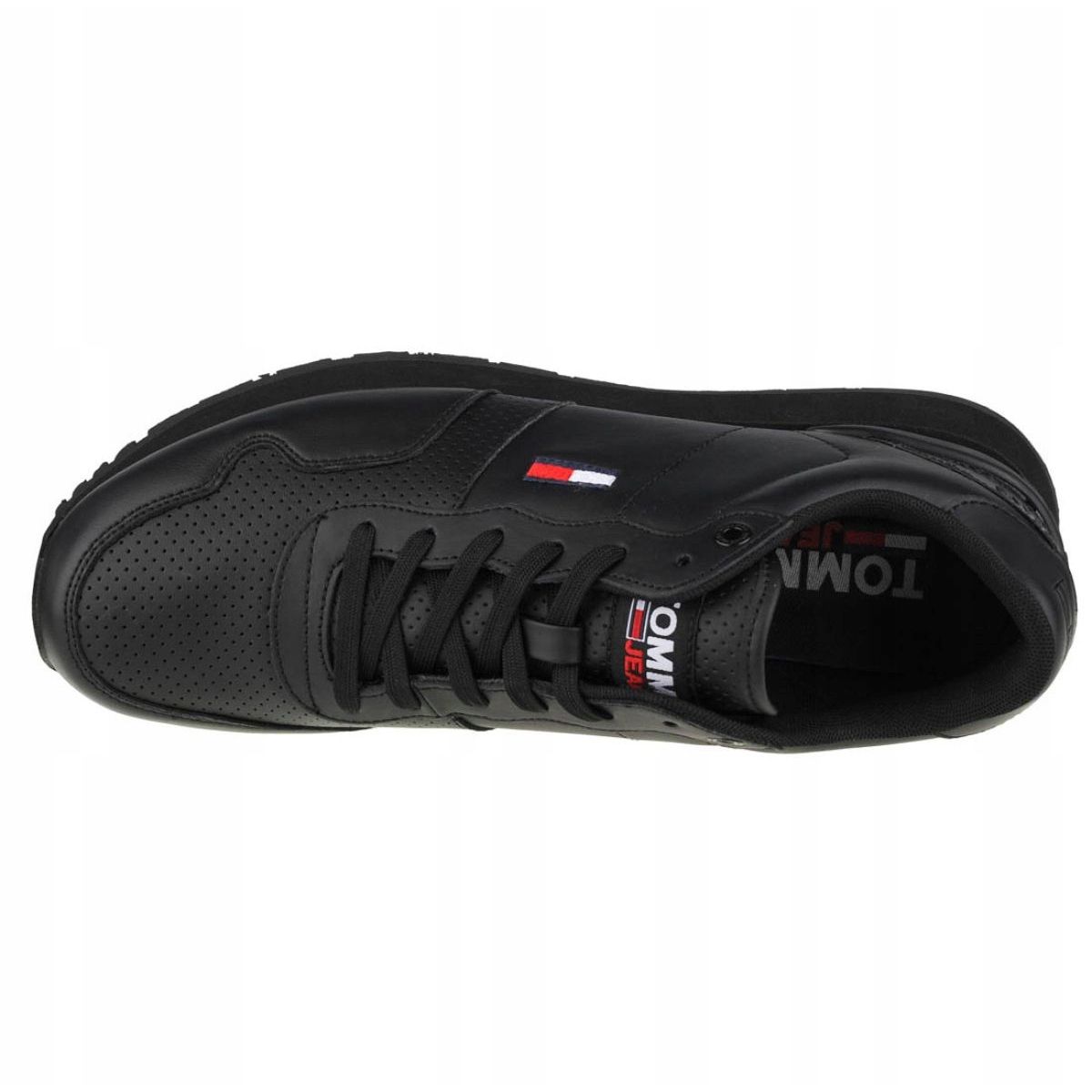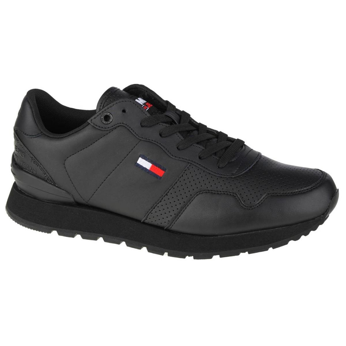 Os sapatos Tommy Hilfiger Jeans Lifestyle Lea Runner M EM0EM00665-BDS na cor preta são a escolha perfeita para homens que valorizam a combinação de estilo e conforto. Estes calçados esportivos baixos, confeccionados em couro natural de alta qualidade, encantam com sua estética minimalista e universalidade, o que os torna perfeitos para o estilo do dia a dia.