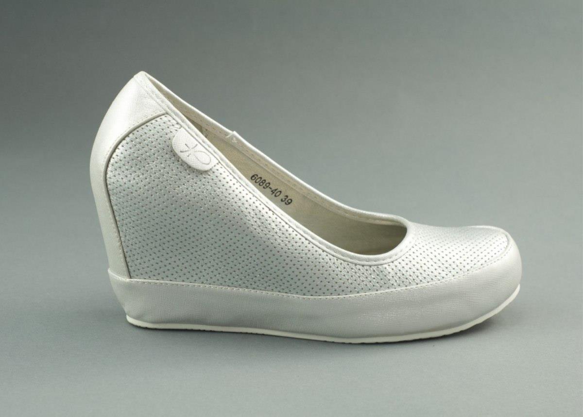 Sneakers elegantes VC6089 por outra marca em um acabamento prateado metálico, combinam um personagem esportivo com a delicadeza feminina. A estrutura inserida e uma cunha de 8 cm de altura adicionam alguns centímetros e garantem suporte estável, e o nariz redondo dá conforto ao uso o dia todo.