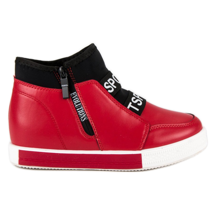 Os tênis vermelho e preto têm altura ideal de plataforma de 2 cm, o que os torna não só estilosos, mas também funcionais, garantindo conforto nas atividades do dia a dia. A inserção têxtil e o contraforte macio do calcanhar aumentam ainda mais o conforto de uso. Sapatos que chegam acima do tornozelo estabilizam perfeitamente o pé, o que é importante durante o movimento.