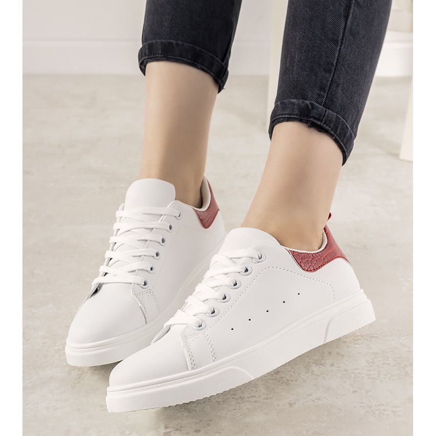 Os tênis Influ brancos e vermelhos com sola grossa são a escolha perfeita para a próxima temporada. Seu design moderno os torna um complemento perfeito para qualquer estilo. A parte superior, confeccionada em couro ecológico de alta qualidade, é decorada com um elegante encaixe vermelho com motivo de pele de crocodilo, que confere um caráter único.