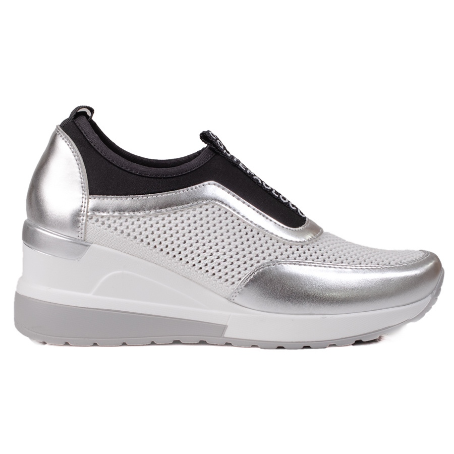 Perfeitos para a primavera e o verão, estes ténis brancos e prateados combinam com muitos estilos - tanto desportivos como mais elegantes. Invista em calçado original que complemente o seu guarda-roupa e lhe permita mover-se com conforto e estilo. Escolha os ténis VINCEZA e sinta-se na moda e confortável todos os dias!