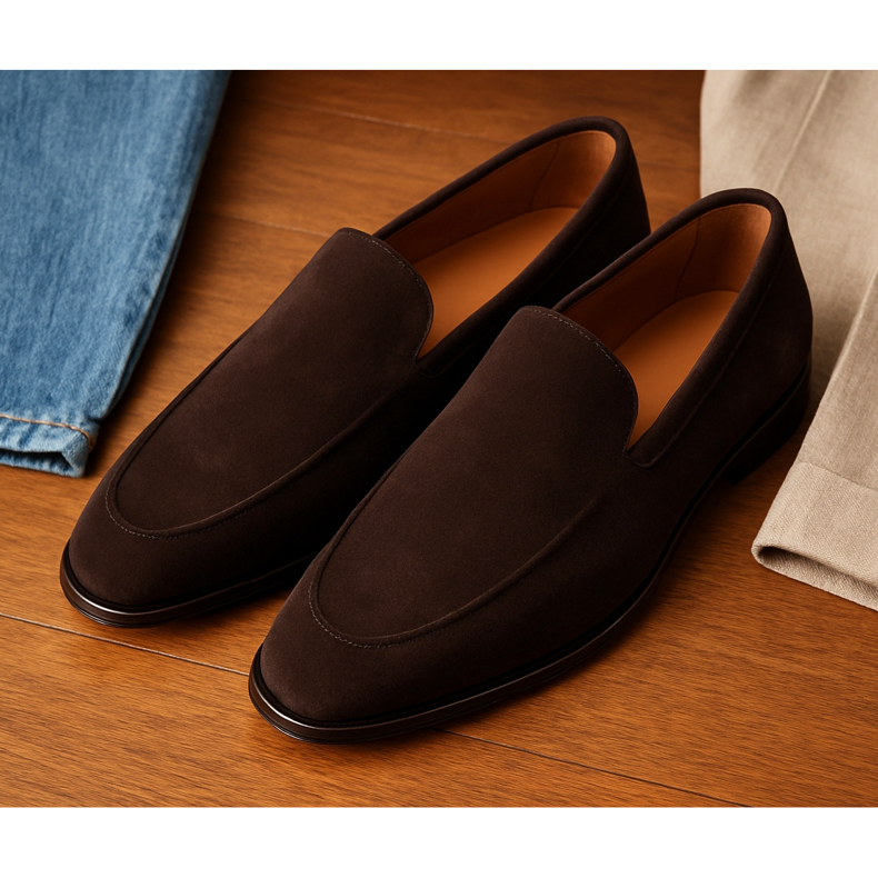 Mocassins são sapatos sem cadarço, originalmente usados pelos nativos americanos. Os mocassins modernos são calçados casuais elegantes caracterizados por: sem fecho, construção em mocassim (costura ao redor dos dedos), couro macio, sola plana ou levemente elevada.