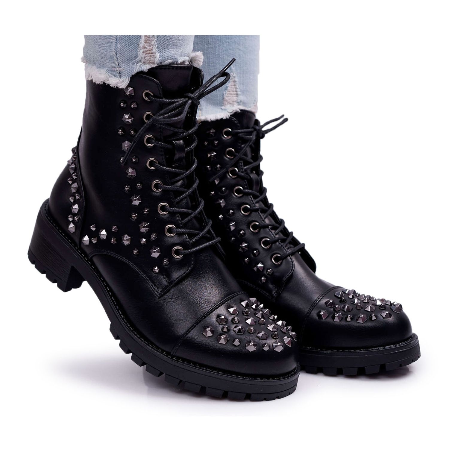 Além da funcionalidade, os modelos SEA se destacam pela aparência elegante graças aos strass e tachas que lhes conferem uma atmosfera rock ousada. Confeccionados em couro ecológico, com salto plano de 5 cm de altura, os botins garantem conforto de uso o dia todo. O bico redondo os torna não apenas elegantes, mas também confortáveis.