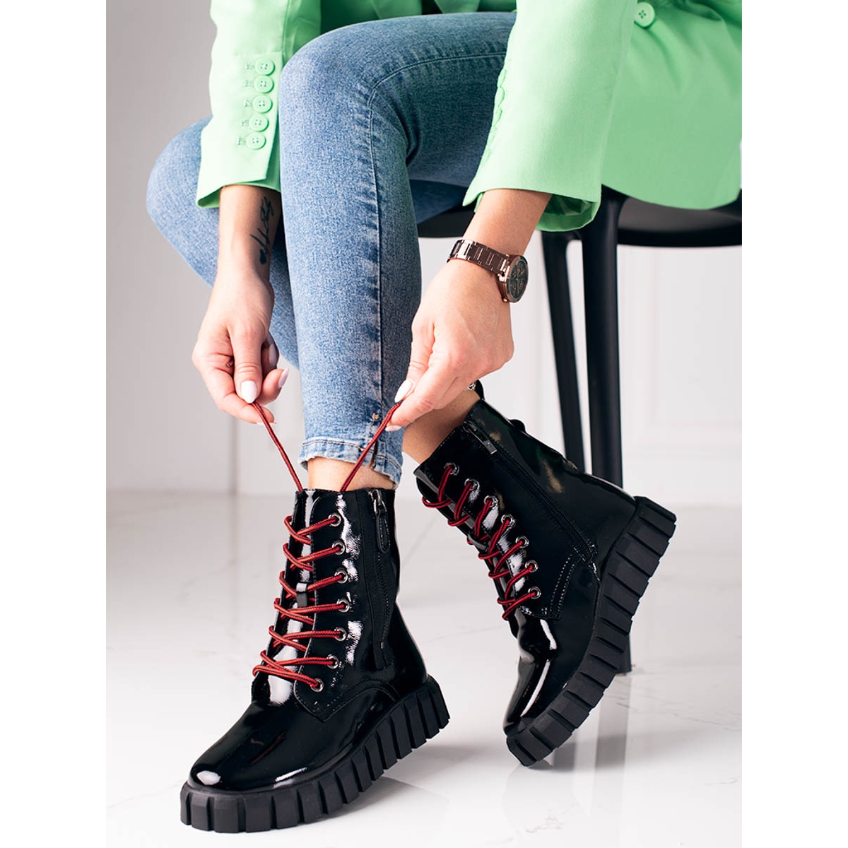 Descubra elegância e conforto com os trabalhadores pretos de plataforma alta do fabricante W. Potocki. Estes exclusivos botins femininos adaptam-se perfeitamente ao estilo casual e rock, o que os torna uma excelente opção para o uso diário, principalmente no outono/inverno.