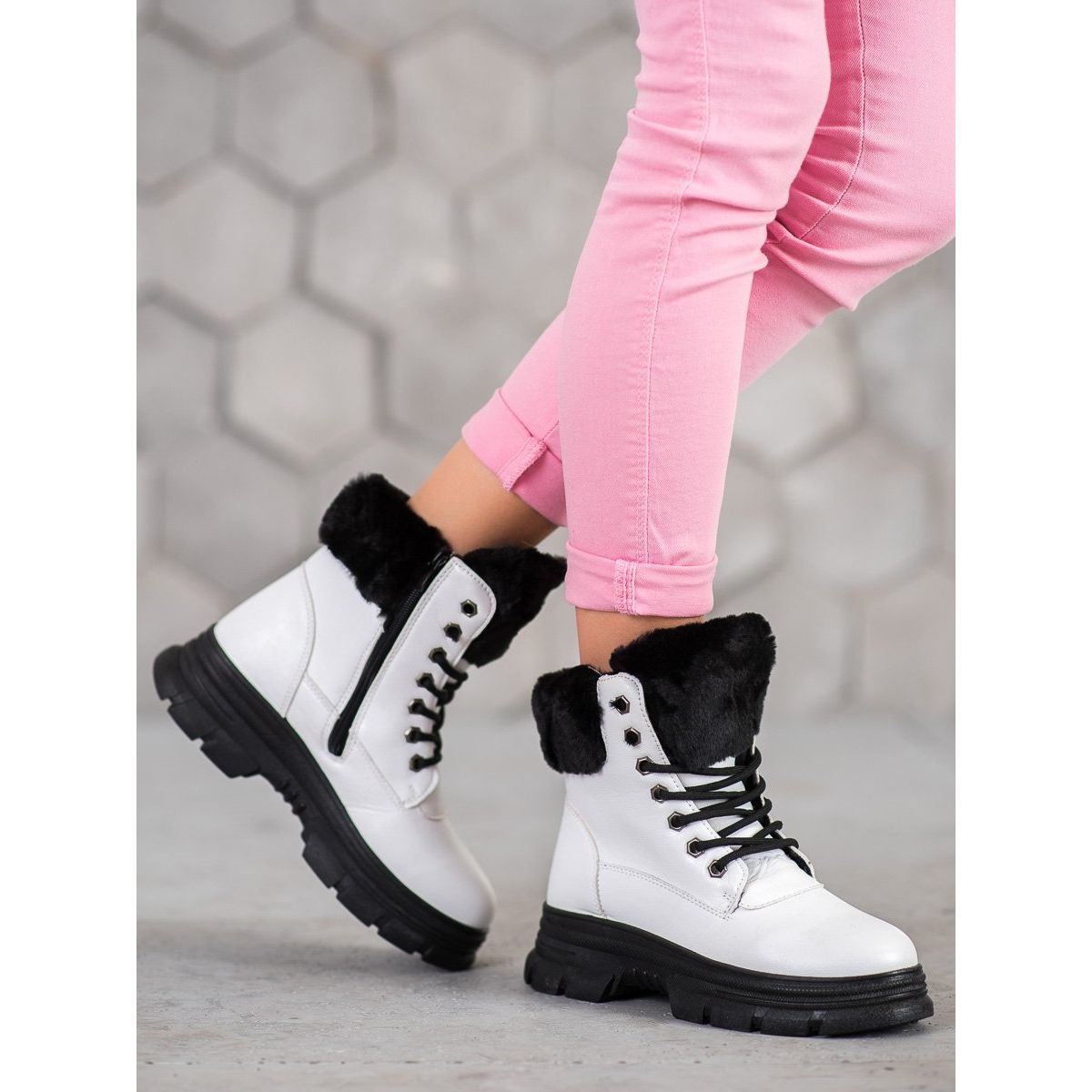 Aqui está uma proposta perfeita para os amantes de sapatos modernos e confortáveis para os dias mais frios - trabalhadores SHELOVET brancos com pele. Estas botas estilosas com salto largo de 5 cm e plataforma de 3 cm garantem conforto mesmo em longas caminhadas. Feitos de material estético semelhante ao couro, proporcionam não apenas uma aparência atraente, mas também durabilidade.