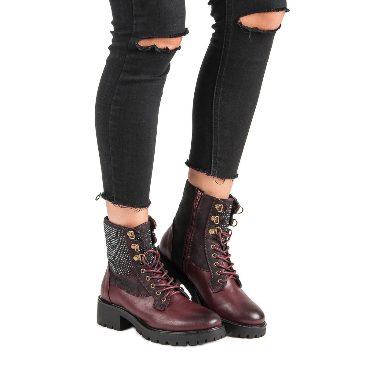 Apresentamos calçados femininos operários extremamente estilosos da Ideal Shoes, que certamente vão chamar a atenção de todas as fashionistas. Estas botas exclusivas na cor vermelha intensa são confeccionadas em couro ecológico de alta qualidade, o que as torna não só na moda, mas também ecologicamente corretas.