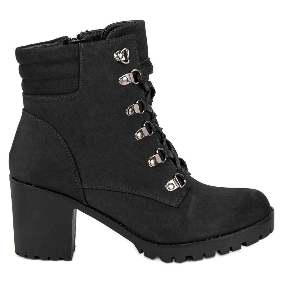 Os trabalhadores Black Vinceza são uma proposta que irá satisfazer todas as mulheres que procuram calçado moderno e funcional. O seu design elegante é realçado pelo salto reforçado e pela sola sólida com banda de rodagem em plástico, que garante estabilidade e conforto em todas as condições. Um bico redondo e bem torneado e um fecho de cadarço com zíper acrescentam personalidade, e o salto de 7,5 centímetros destaca perfeitamente a figura.