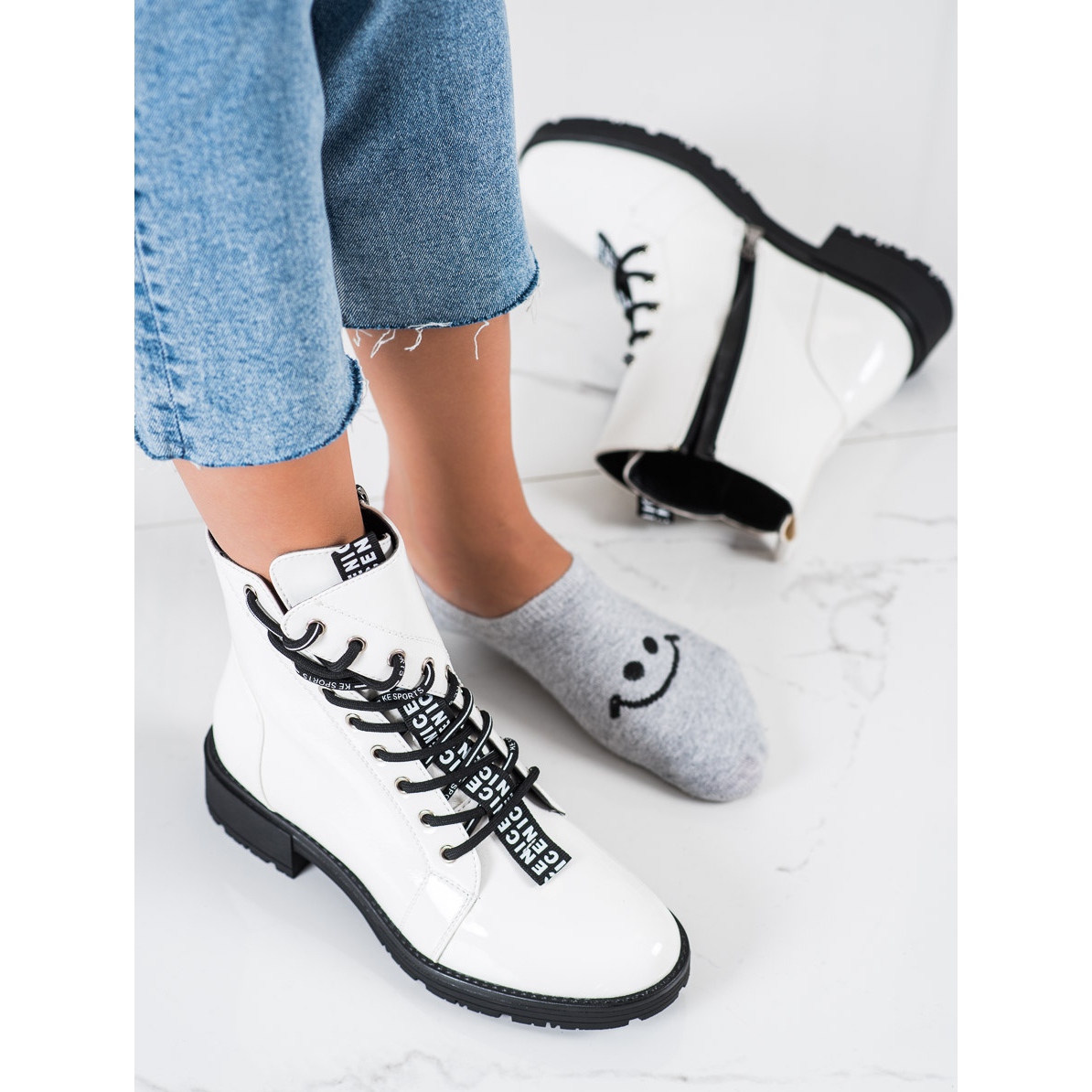 Apresentamos VINCEZA White Workers - uma combinação perfeita de estilo, conforto e funcionalidade, que se enquadra perfeitamente nas tendências de moda para a estação outono/inverno. Estes botins femininos da coleção KeeShoes são obrigatórios para todas as mulheres que valorizam um look casual todos os dias.