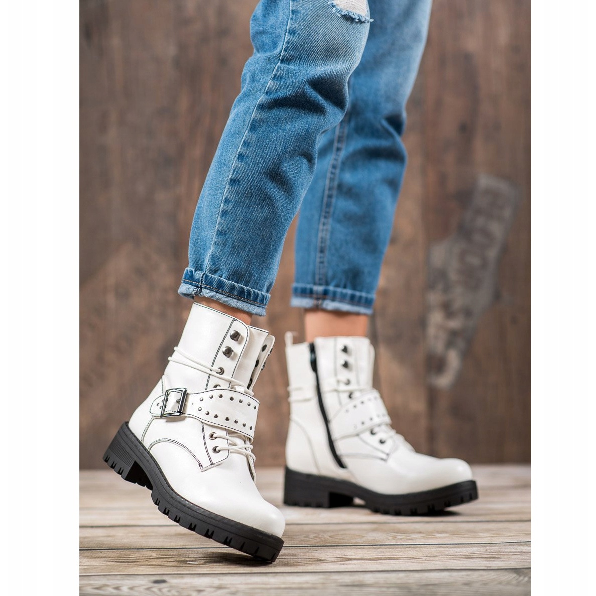 Novidade da marca Goodin - os sapatos brancos de trabalho são a solução perfeita para os dias de outono e inverno. Estes sapatos femininos da moda combinam elegância com funcionalidade, oferecendo conforto e design original. Graças à altura acima do tornozelo, os trabalhadores não só protegem os pés do frio, mas também ficam extremamente elegantes.