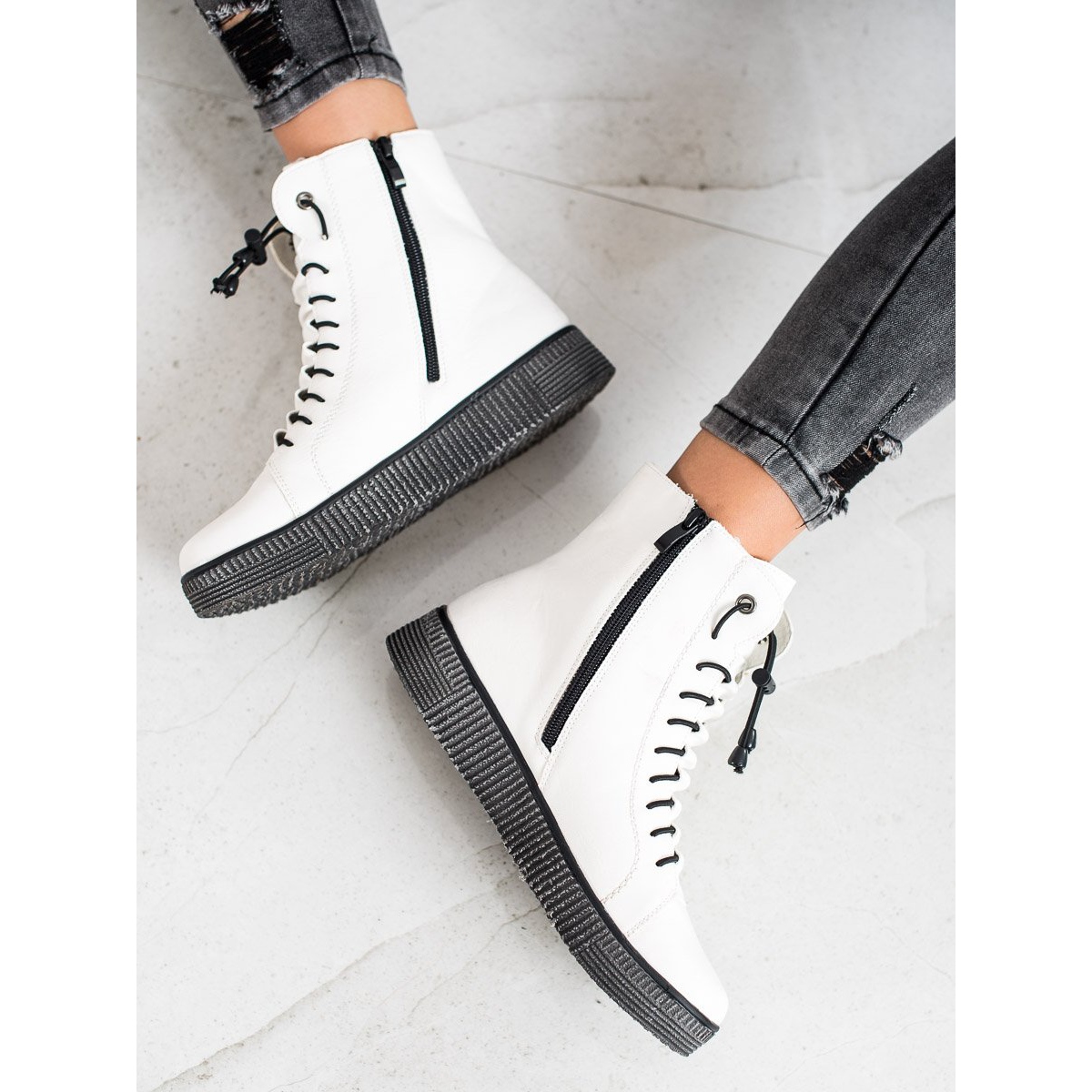 Conheça as plataformas brancas da renomada marca SHELOVET - a escolha perfeita para mulheres que valorizam estilo e conforto. Estes botins da moda, parte da coleção KeeShoes, são perfeitos para o estilo do dia a dia e o seu design universal está em linha com as últimas tendências.