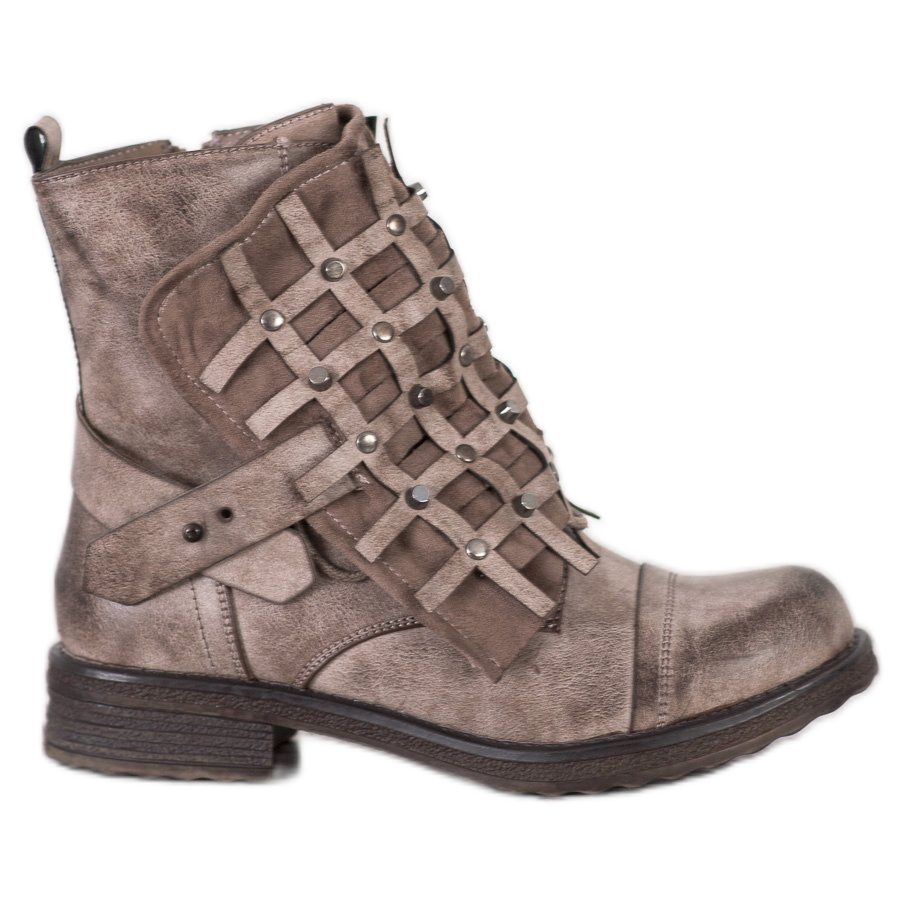 Equipados com fecho macio embutido e bico redondo, proporcionam não só uma aparência atraente, mas também conforto no uso. O cabedal, de 15-16 cm de altura, é confeccionado em couro ecológico de alta qualidade, adicionalmente decorado com espetaculares strass que lhes conferem um visual extremamente original e fashion.