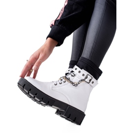 O modelo é feito de couro ecológico de alta qualidade, o que não só enfatiza sua aparência moderna, mas também os torna ecologicamente corretos. O forro têxtil macio e o isolamento interno garantem calor e conforto nos dias mais frios. A biqueira redonda adiciona charme clássico e fivelas e correntes decorativas adicionam um toque de estilo rock.