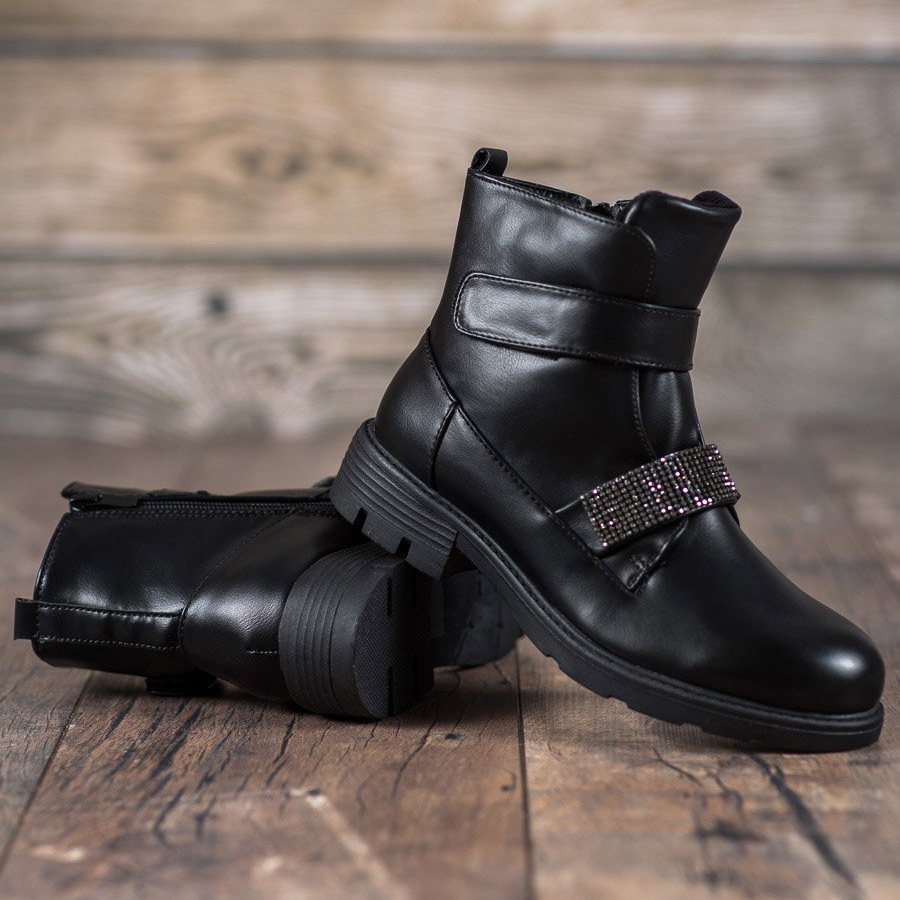 Apresentamos os sapatos Evento Workery com cristais na cor preta - a combinação perfeita entre estilo rock e elegância. Estas botas incomuns de salto baixo certamente atrairão a atenção de todas as mulheres autoconfiantes que apreciam um design único e conforto de uso.