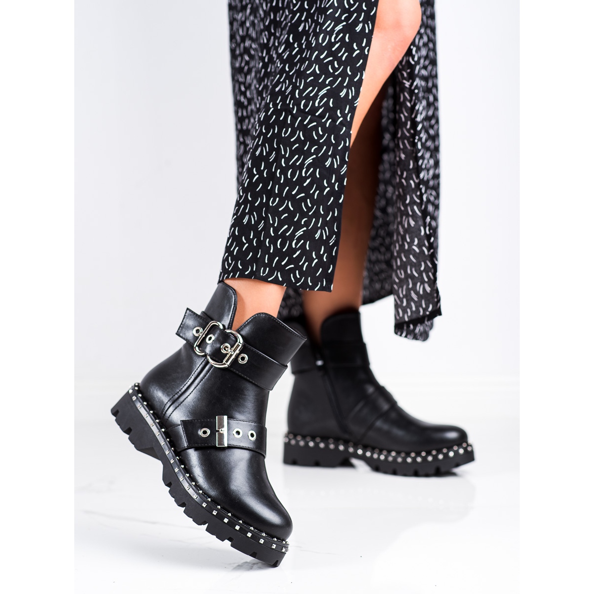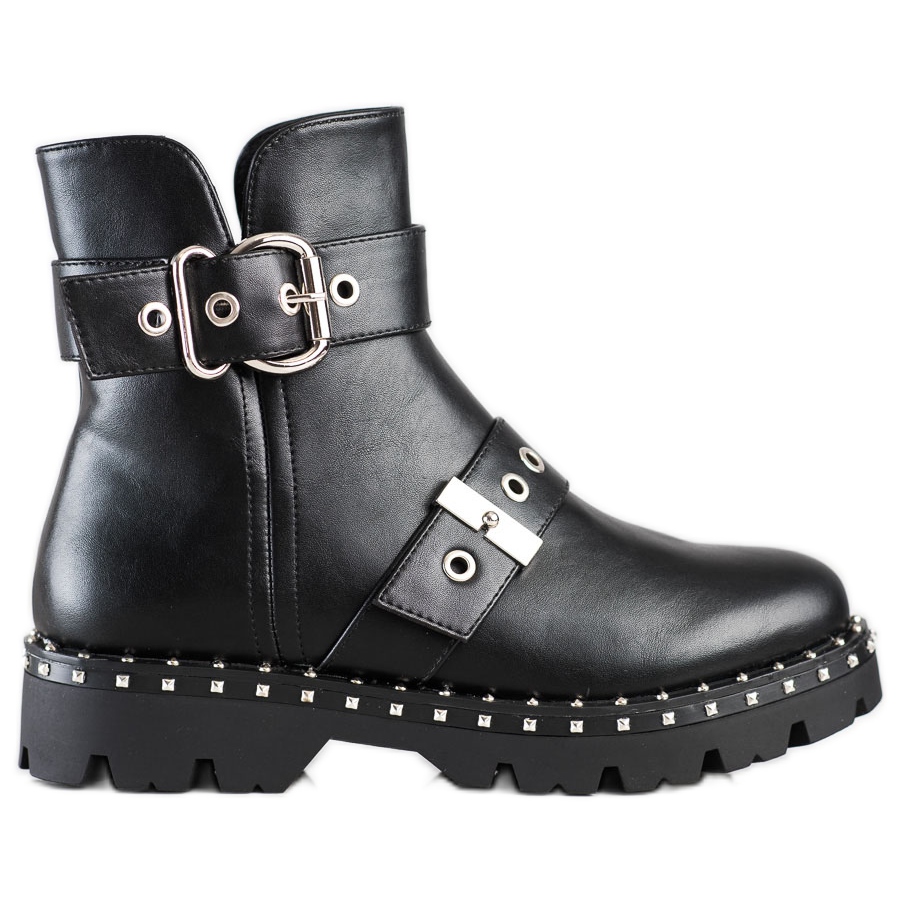 Janessa Workers With Strass na cor preta são a escolha perfeita para mulheres que desejam aliar conforto com estilo fashion. Estes botins femininos têm um carácter rock, graças aos strass decorativos e tachas que lhes conferem um look único. Fabricados em imitação de couro de alta qualidade, proporcionam não só uma aparência atraente, mas também durabilidade e resistência às intempéries.