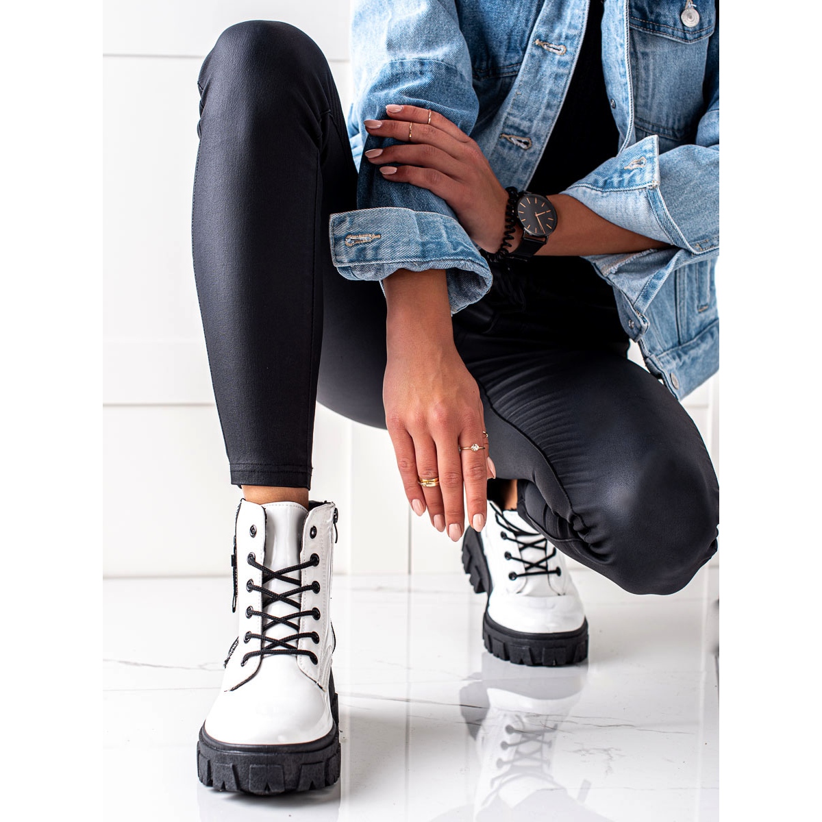 Apresentamos plataformas com cadarços brancos do renomado fabricante TRENDI - a escolha perfeita para mulheres que desejam aliar conforto com estilo moderno. Estas botas femininas distinguem-se pelo salto fechado e macio e pelo excelente isolamento, o que as torna uma companhia perfeita nos dias mais frios.