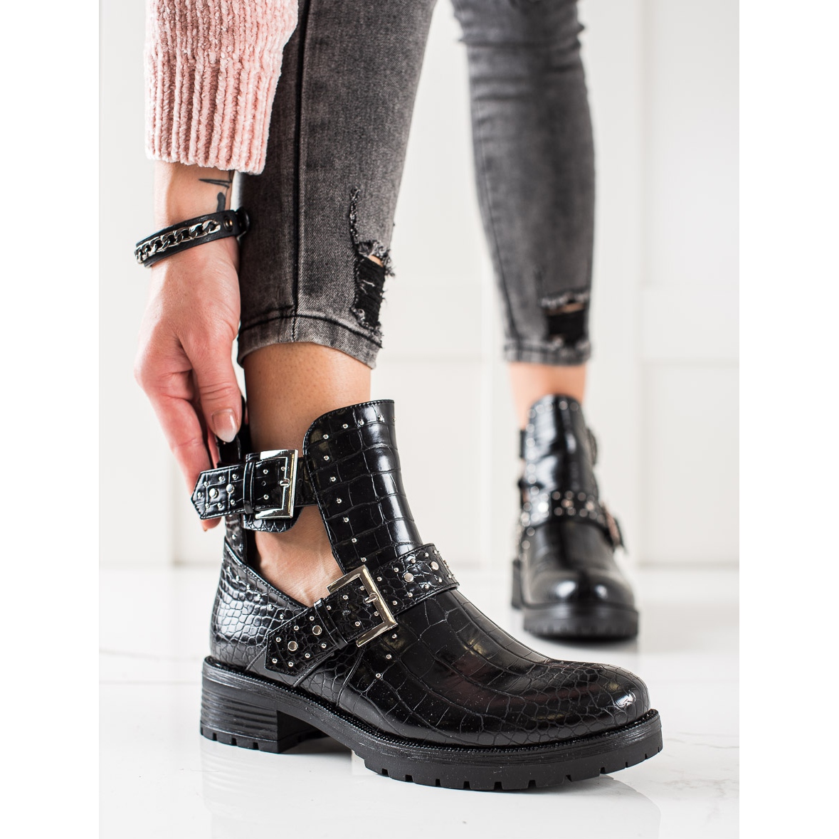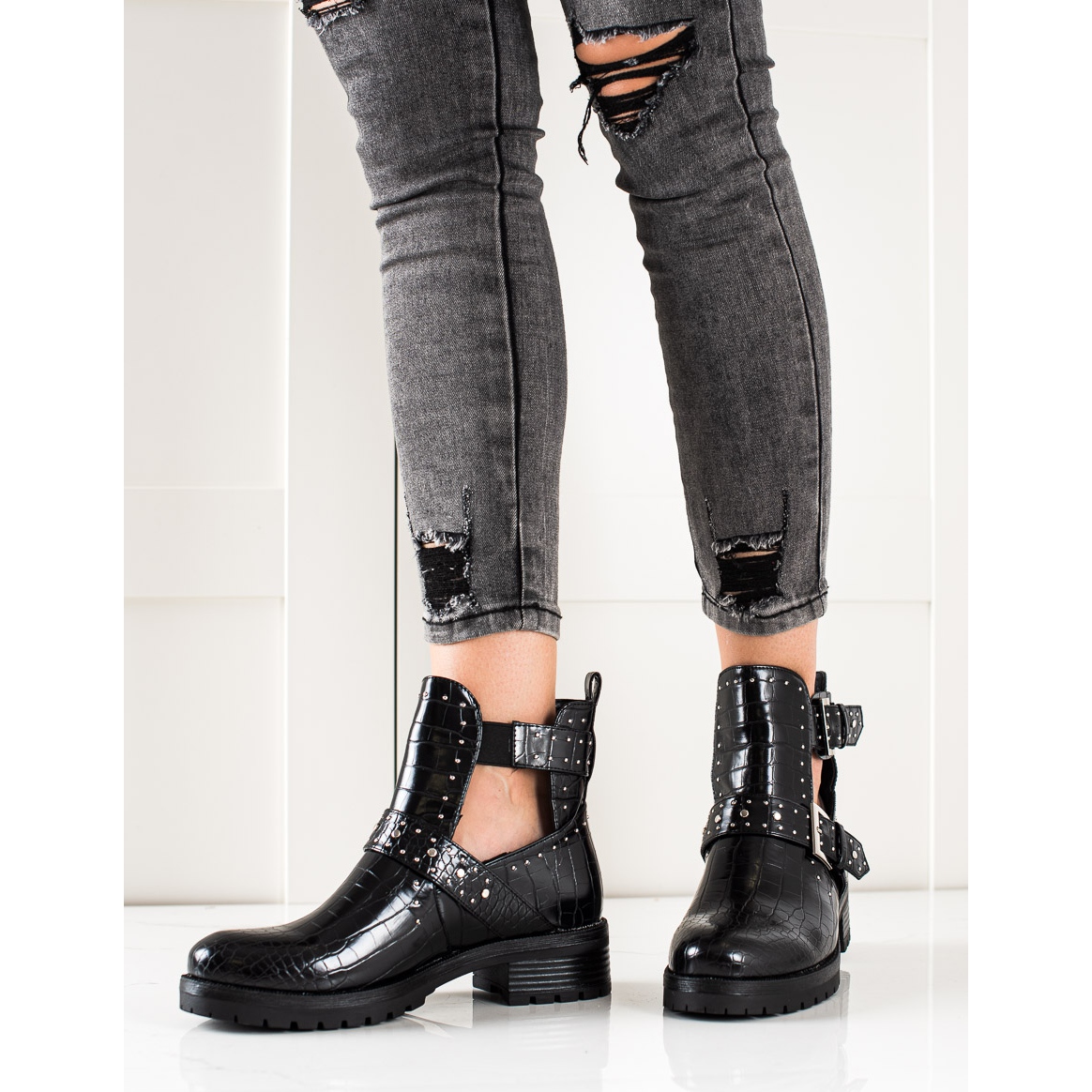 Os trabalhadores Bestelle se distinguem por uma fivela decorativa e zircões sutis que lhes conferem brilho. Confeccionados em couro ecológico, têm um visual elegante e a biqueira redonda enfatiza o estilo casual. O cabedal, com 12 cm de altura e 10 cm de largura, ajusta-se perfeitamente à perna, garantindo conforto e liberdade de movimentos.