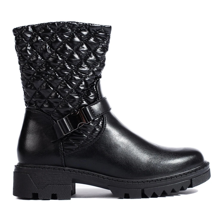 Trabalhadores elegantes e práticos em uma edição preta e acolchoada são a combinação perfeita de caráter rock e conforto diário. A camada externa do couro ecológico imita perfeitamente o material natural, e a fivela decorativa e o acolchoado sutil adicionam um estilo modelável e expressivo aos sapatos. Graças à fixação e zíper rígido ao lado, inserir e combinar os sapatos é rápido e confortável.