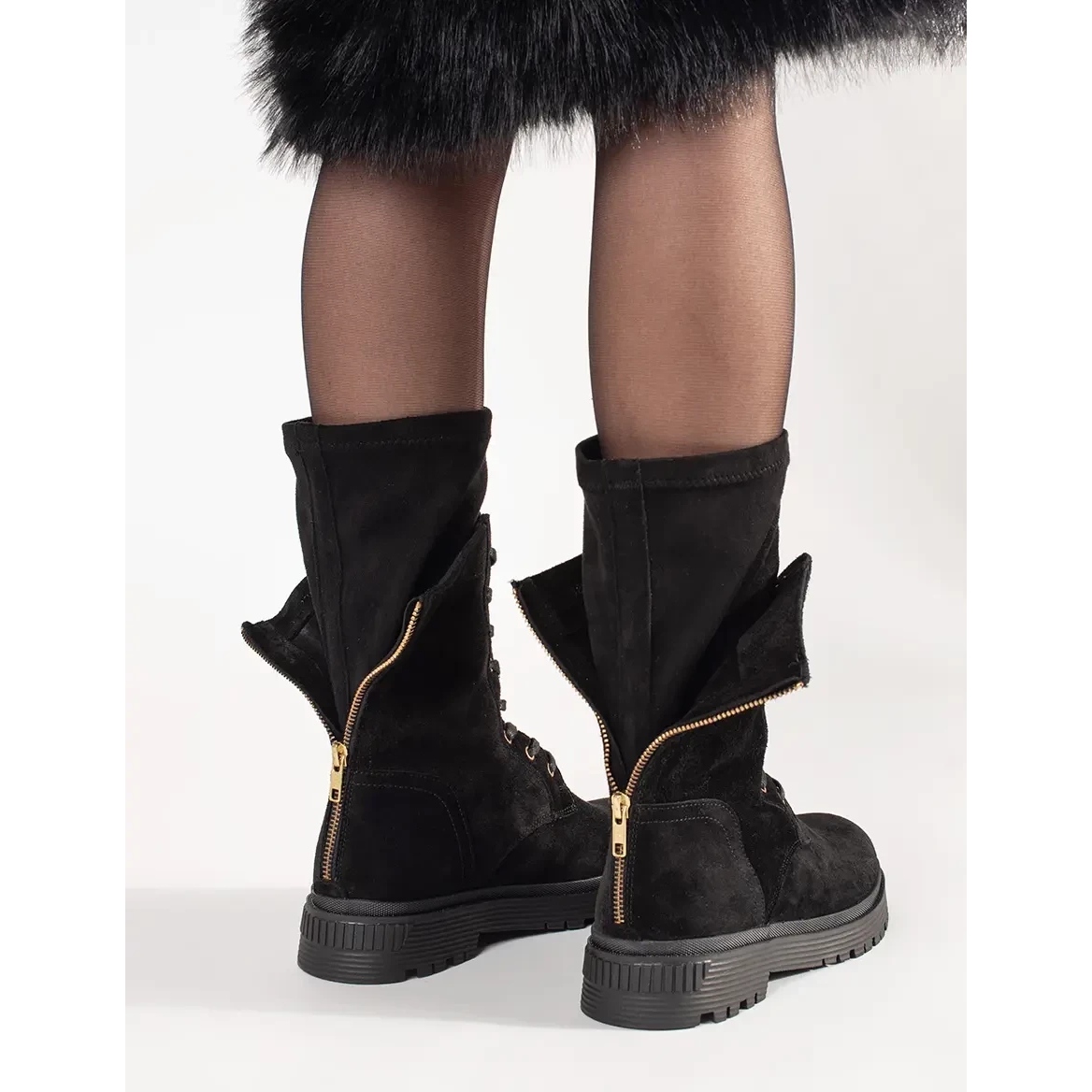 - Altura superior: 24 cm (tornozelo), largura superior: 32