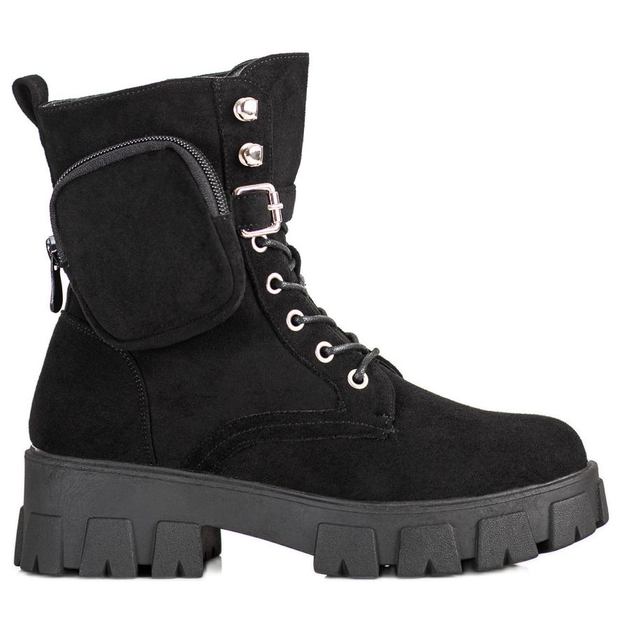 Apresentamos botas de trabalho em camurça com bolso da Vinceza, que se adaptam perfeitamente às tendências de moda da estação outono/inverno. Estes elegantes botins pretos tornar-se-ão certamente um elemento indispensável no seu guarda-roupa do dia a dia.