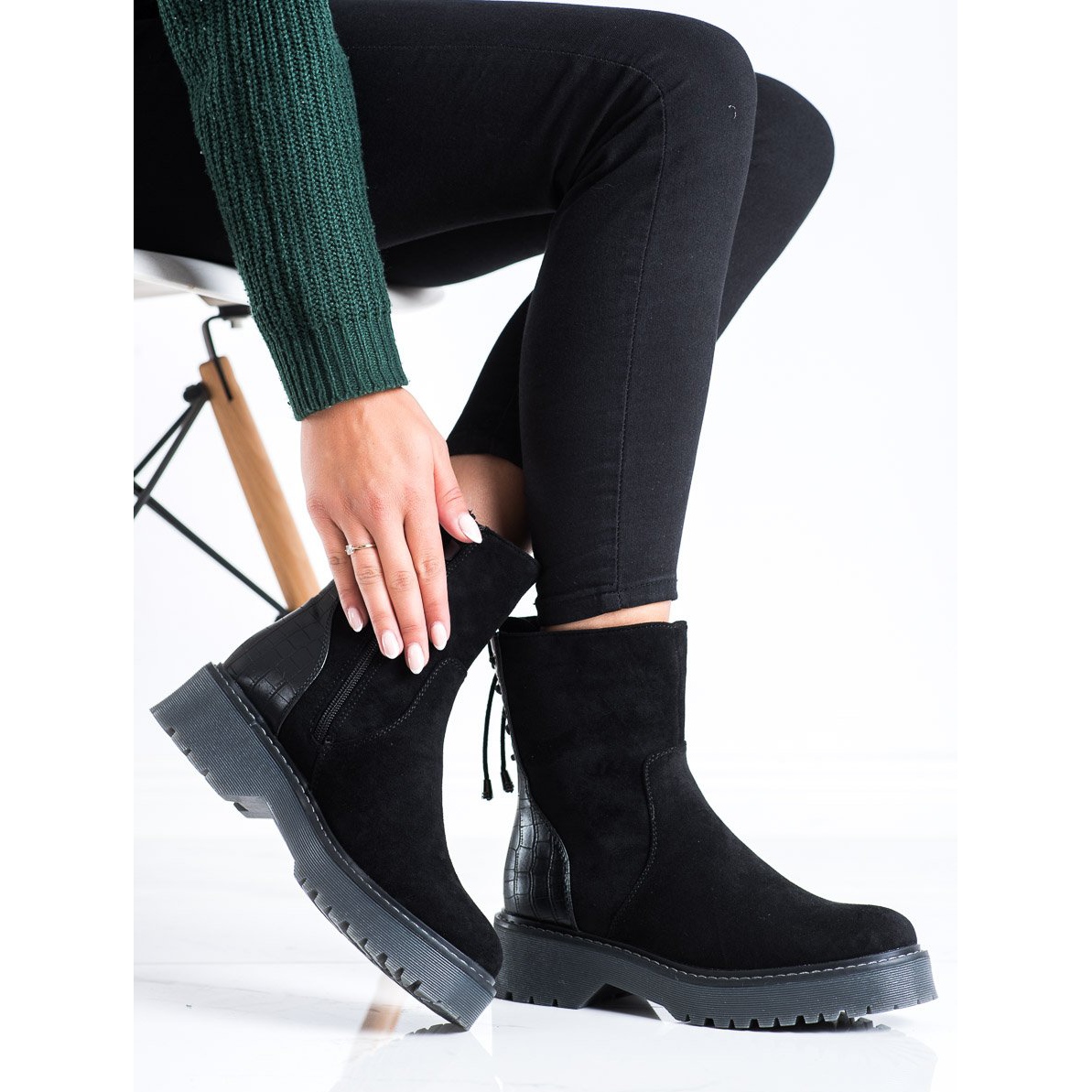 Descubra uma nova dimensão de estilo e conforto com os trabalhadores pretos J. Star! Estas botas exclusivas combinam o estilo fashion, casual e rock, combinando perfeitamente com as tendências de outono e inverno. Feitos com materiais de alta qualidade, 50% imitação de couro e 50% imitação de camurça, certamente chamarão a atenção de todos os amantes da moda.