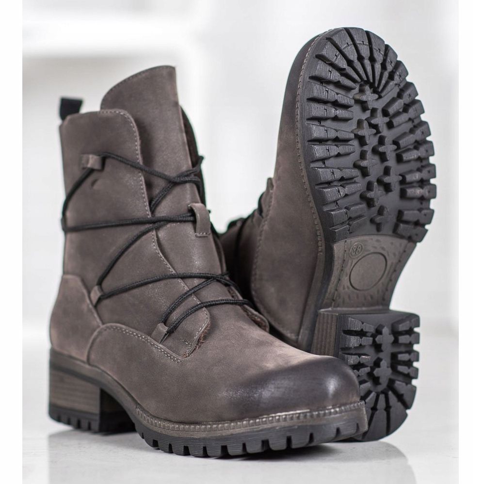 Descubra novas possibilidades no estilo esportivo com Workers cinza da marca Kylie. Estes botins femininos da moda não só proporcionam conforto, mas também um visual atraente, perfeitos para os dias mais frios. Confeccionadas em couro ecológico de alta qualidade, a parte superior até o tornozelo é isolada com pêlo macio, o que significa que seus pés estarão sempre protegidos do frio.