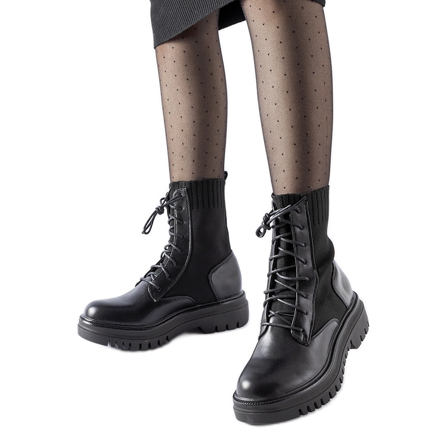 Trabalhadores elegantes com um corte de meia, que combinam o design moderno com a conveniência do uso. A altura que atinge o tornozelo (22,5 cm) fornece aos sapatos um personagem distinto e permite criar estilizações casuais e mais rochas. Graças à inserção e corte ajustado, os sapatos seguram com confiança o pé, e o nariz redondo oferece conforto para os dedos.