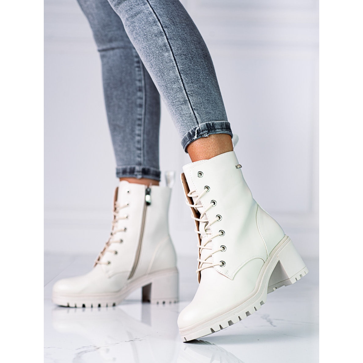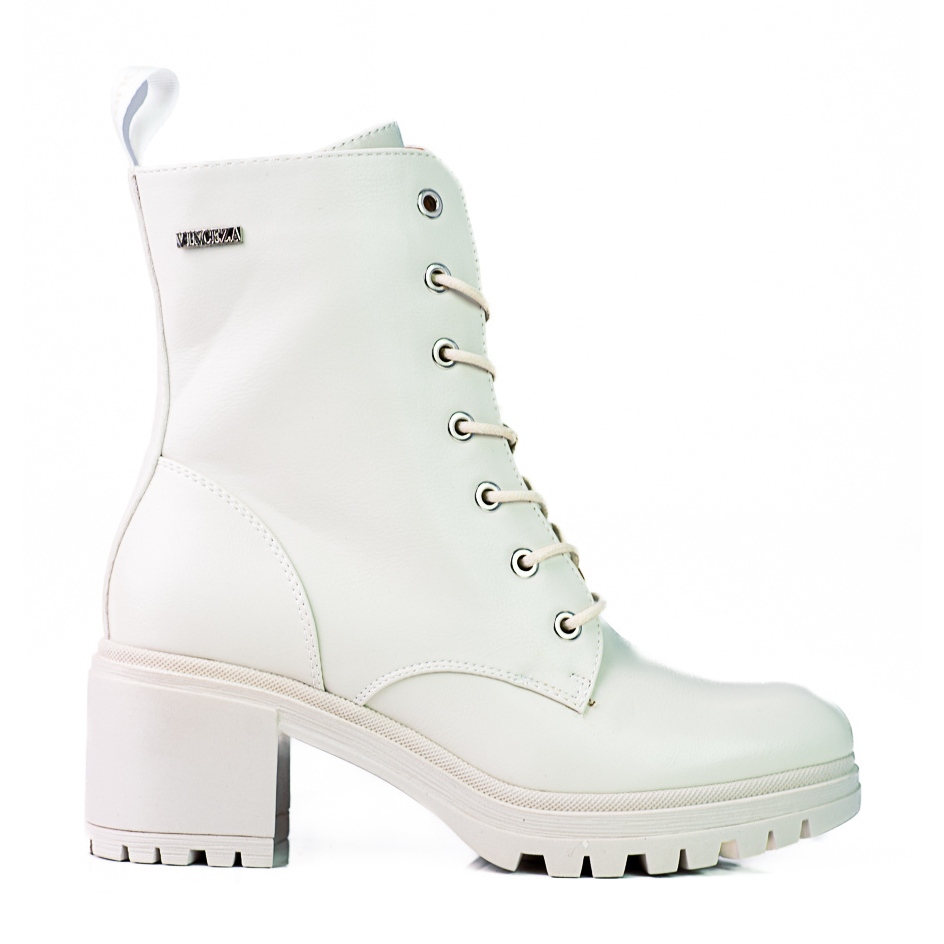São botas de trabalho femininas bege com atacadores da Vinceza, que serão a escolha perfeita para o outono/inverno. Estes elegantes botins combinam o estilo casual e rock, perfeitos para os passeios do dia a dia. Confeccionados em couro ecológico com superfície texturizada, têm um aspecto extremamente elegante e sua cor bege atemporal facilita a combinação com vários estilos.