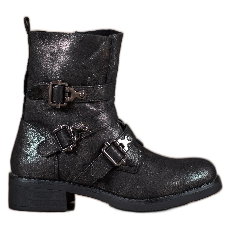 Os cavalos de batalha pretos da marca Bestelle são a escolha perfeita para mulheres que desejam adicionar um caráter único ao seu estilo do dia a dia. Confeccionados em couro ecológico com acabamento glitter, esses calçados se destacam por um design original que chama a atenção e valoriza a individualidade. O fecho de correr e as tiras decorativas com fivelas não só os tornam atraentes, mas também funcionais.