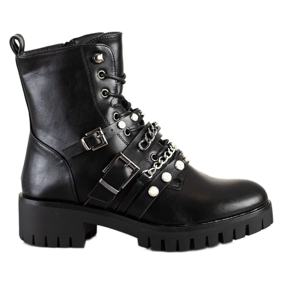 Descubra estilo e conforto extraordinários com os elegantes trabalhadores da Cm Paris com pérolas negras. Estas botas exclusivas são uma combinação perfeita de elegância casual e caráter rock, perfeitas para o uso diário no outono/inverno.
