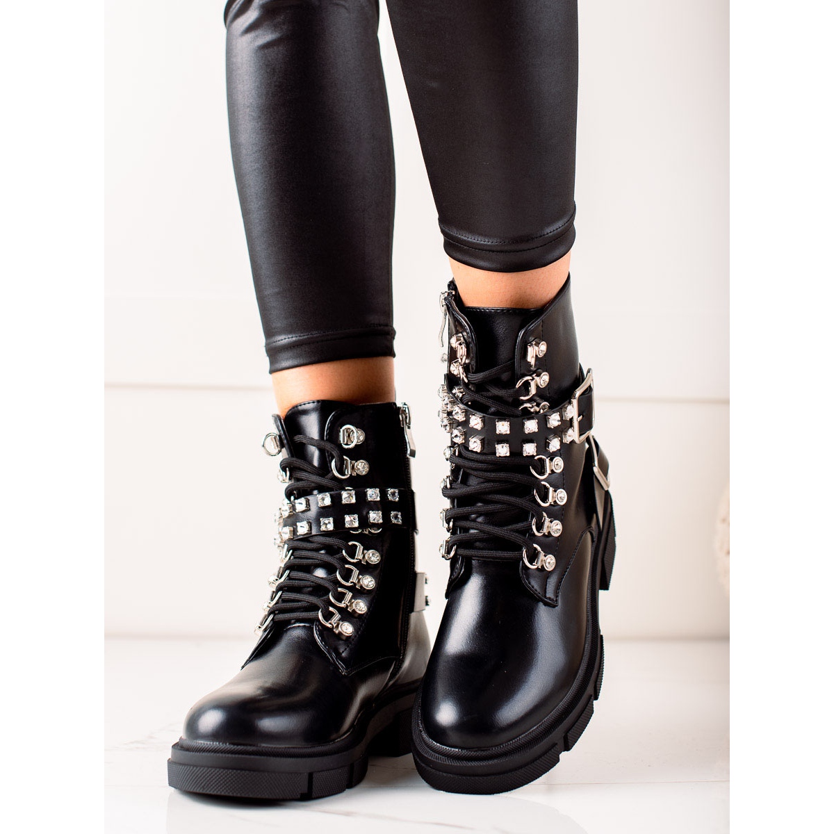 Descubra uma nova dimensão de estilo com os trabalhadores da TRENDI! Estas botas pretas da moda são a escolha perfeita para todas as mulheres que procuram uma combinação de conforto e carácter rock. Confeccionados em couro ecológico de alta qualidade, garantem não só um ótimo visual, mas também conforto de uso.
