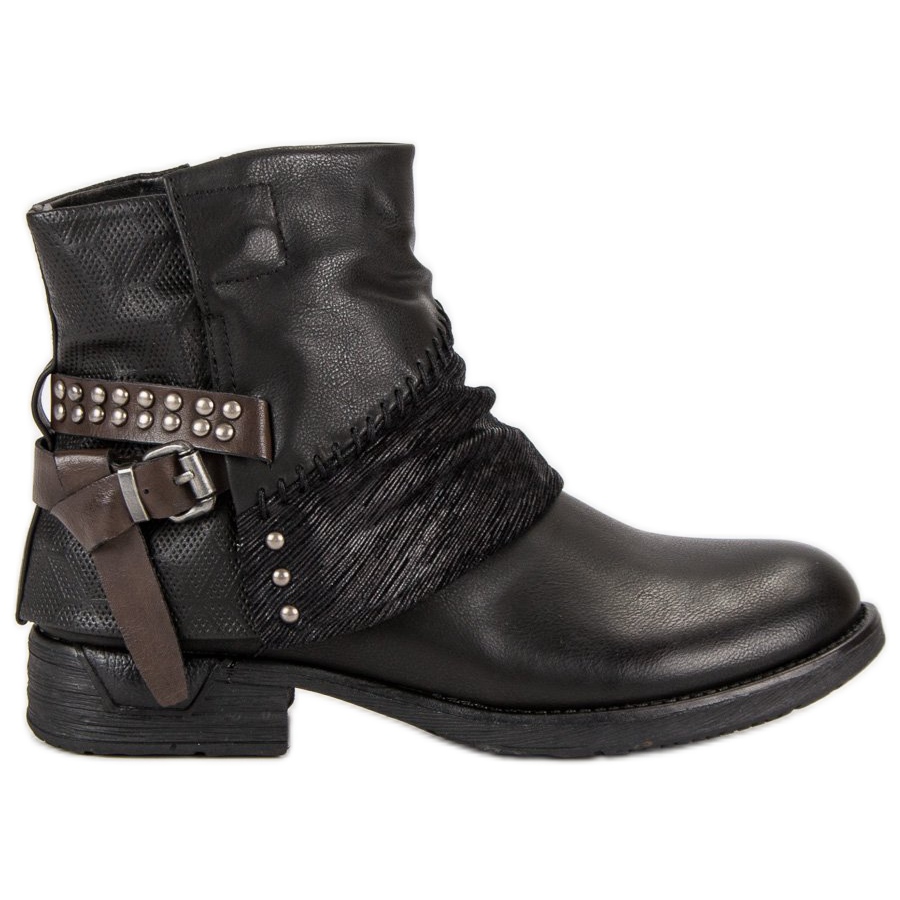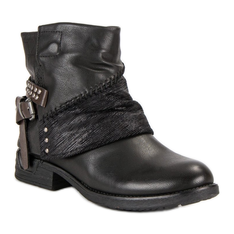 Descubra a moda novamente com nossas trabalhadoras negras exclusivas! Esses sapatos estilosos não só chamam a atenção pelo seu design original, mas também proporcionam conforto e comodidade. A parte superior acima do tornozelo é cuidadosamente recortada com elementos adicionais em couro ecológico, o que lhes confere um caráter rock único.