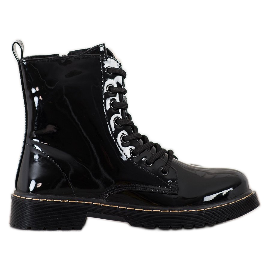 Apresentamos as botas Small Swan Patent Workers numa elegante cor preta, que são uma combinação perfeita entre o estilo casual e rock. Estes sapatos femininos exclusivos, desenhados para o outono/inverno, são a escolha perfeita para o uso diário, acrescentando personalidade a qualquer estilo.