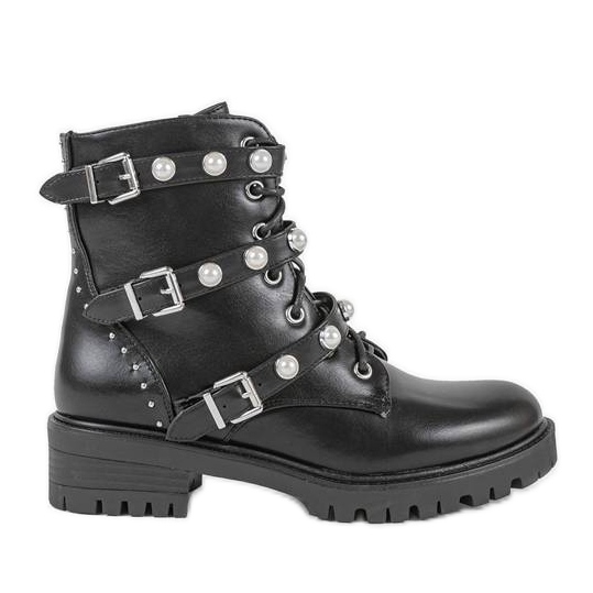 Os trabalhadores Gama decorados em preto são a escolha perfeita para o outono que se aproxima! Estas botas estilosas confeccionadas em couro ecológico de alta qualidade não só encantam com sua aparência, mas também proporcionam calor e conforto graças ao isolamento interno. A parte superior é decorada com listras atraentes decoradas com strass, o que lhes confere um toque característico e moderno.
