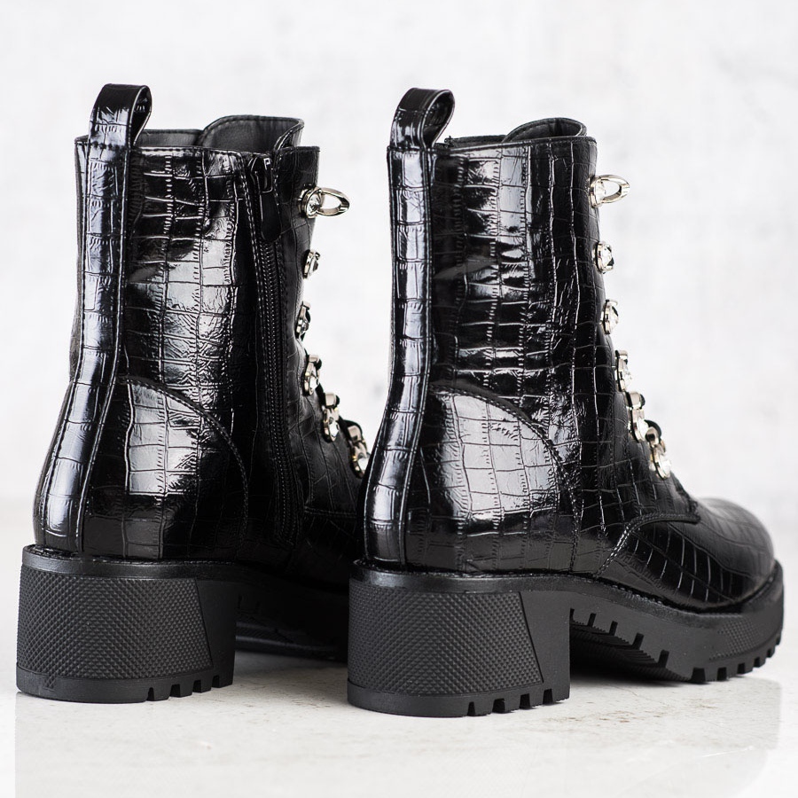 Esses modelos possuem um prático zíper e fecho com cadarço, o que os torna fáceis de colocar e tirar. Seu design clássico com elementos de um padrão animal da moda os torna não apenas um calçado funcional, mas também um toque moderno em qualquer estilo.
