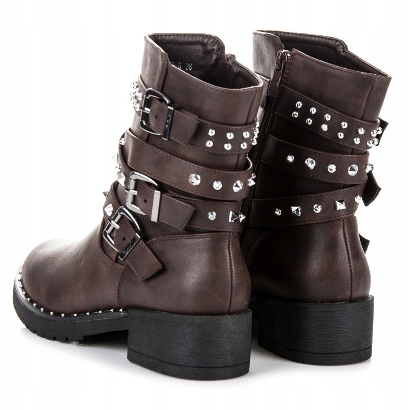 Oferecemos botas de trabalho marrons com tachas do renomado fabricante Cink Me - calçado perfeito para mulheres que desejam expressar seu estilo único em estilos casuais e rock. Estes botins da moda são confeccionados em couro ecológico de alta qualidade, o que garante não só durabilidade, mas também conforto de uso.