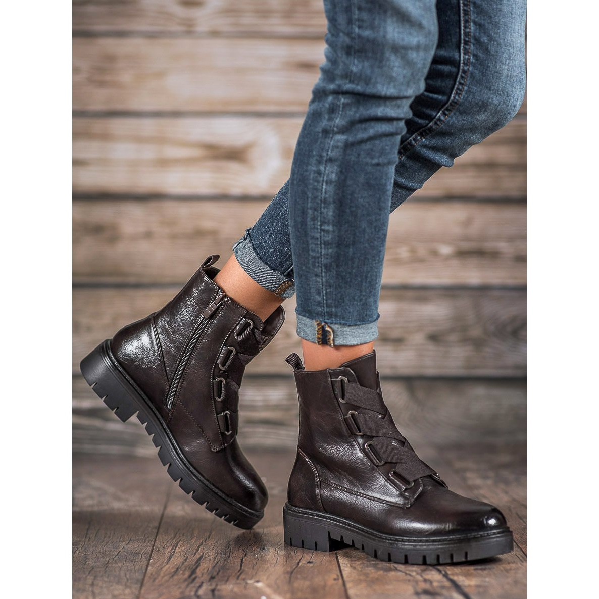 Brown Workers da M.Daszyński são uma combinação perfeita de estilo, conforto e funcionalidade que certamente irá agradar a todas as mulheres. Estas botas únicas distinguem-se por um design maciço que não só chama a atenção, mas também proporciona uma durabilidade excepcional, ideal para os desafios do dia a dia em condições difíceis.