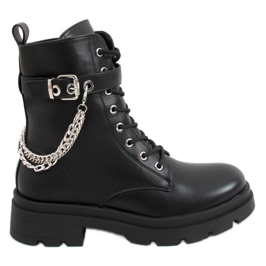 Apresentamos Workers com correntes na cor preta - o modelo RQ381 Black, que certamente se tornará um elemento indispensável no seu guarda-roupa! Estes botins femininos com atacadores distinguem-se pela sola alta, o que lhes confere carácter e os torna extremamente elegantes. O design original com correntes removíveis é um hit fashion que você não pode perder!