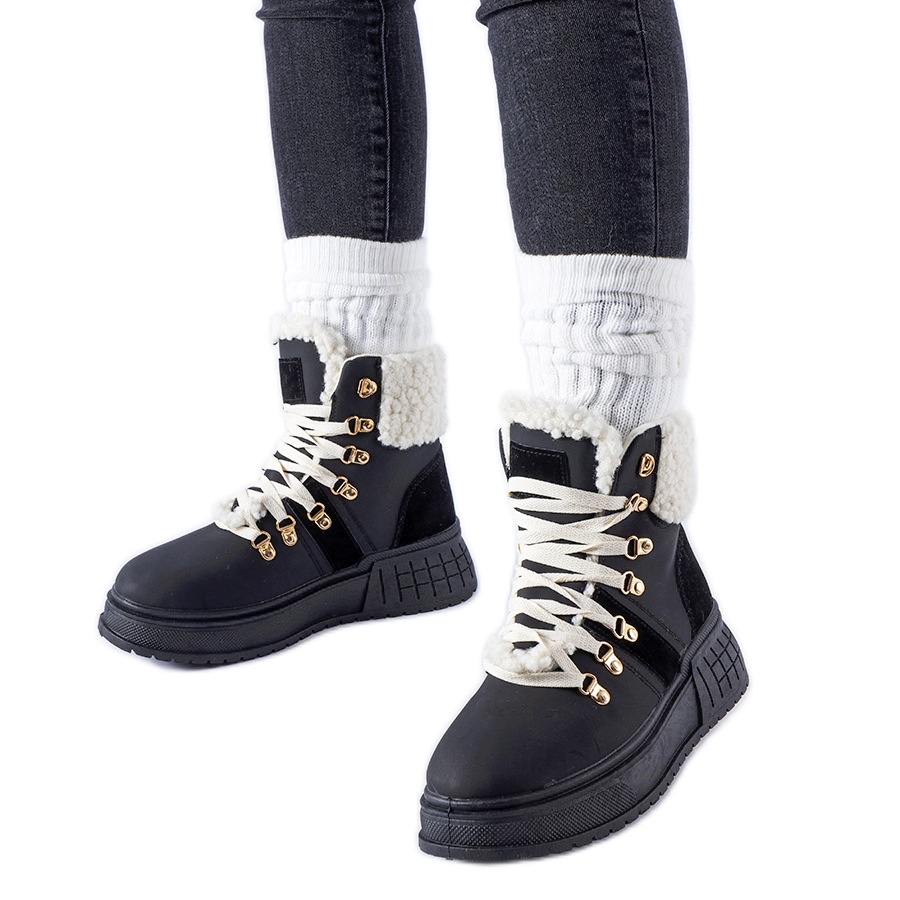 Rodrigo Black Workers em uma plataforma enorme - uma combinação de estilo, conforto e funcionalidade. Essas botas de inverno são a escolha perfeita para dias mais frios: isolados com pêlo, feitos de couro ecológico e colocados em uma plataforma estável, 5 cm, que adicionará alguns centímetros, sem desistir de conforto.