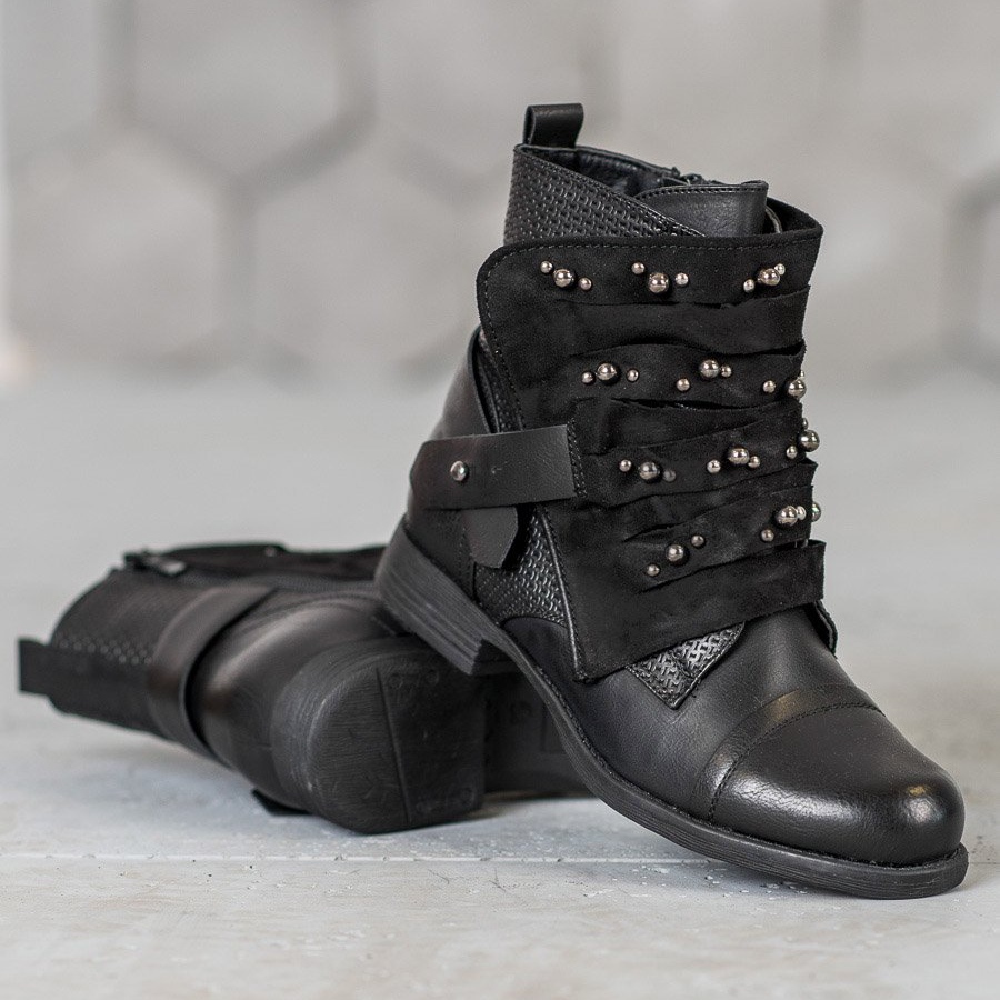 Os trabalhadores se distinguem por numerosos strass que lhes conferem um caráter distinto e os tornam um complemento perfeito para estilos ousados. O contraforte embutido e macio garante conforto no uso, e a sola sintética com banda de rodagem garante uma boa aderência, o que é especialmente importante nos dias mais frios.