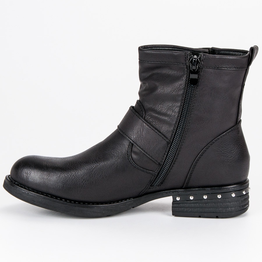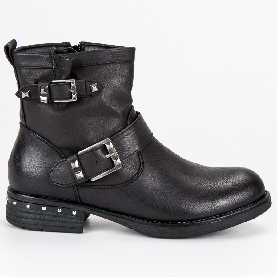 Fivelas decorativas e tachas atraentes chamam a atenção, conferindo aos sapatos um caráter único. O salto de 3,5 cm de altura e a sola com banda de rodagem não só agregam estilo, mas também garantem conforto no uso diário. Graças ao seu acabamento de alta qualidade, você pode ter certeza de que servirão por muitas temporadas.