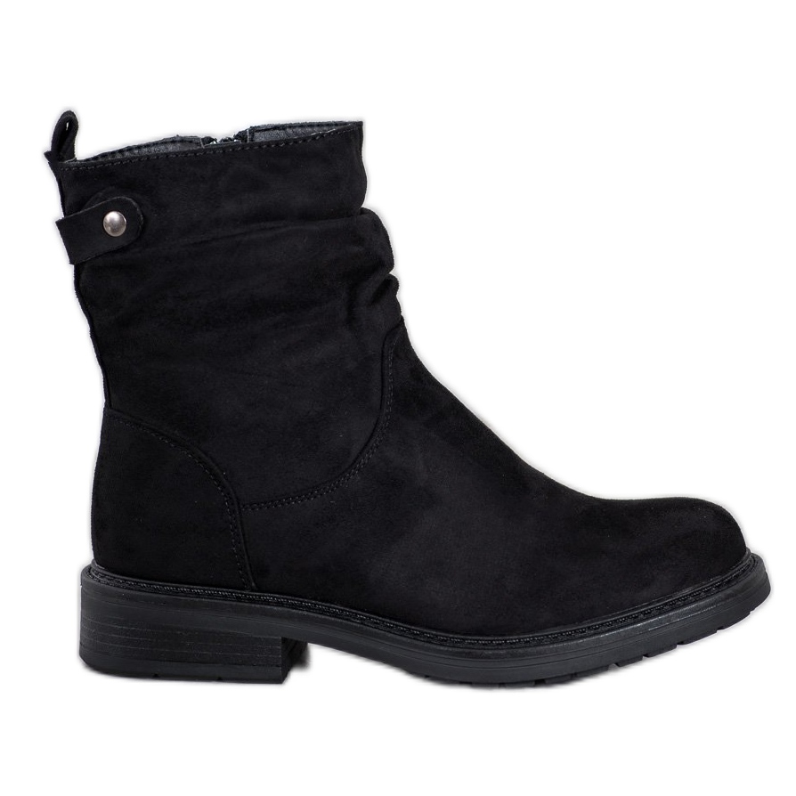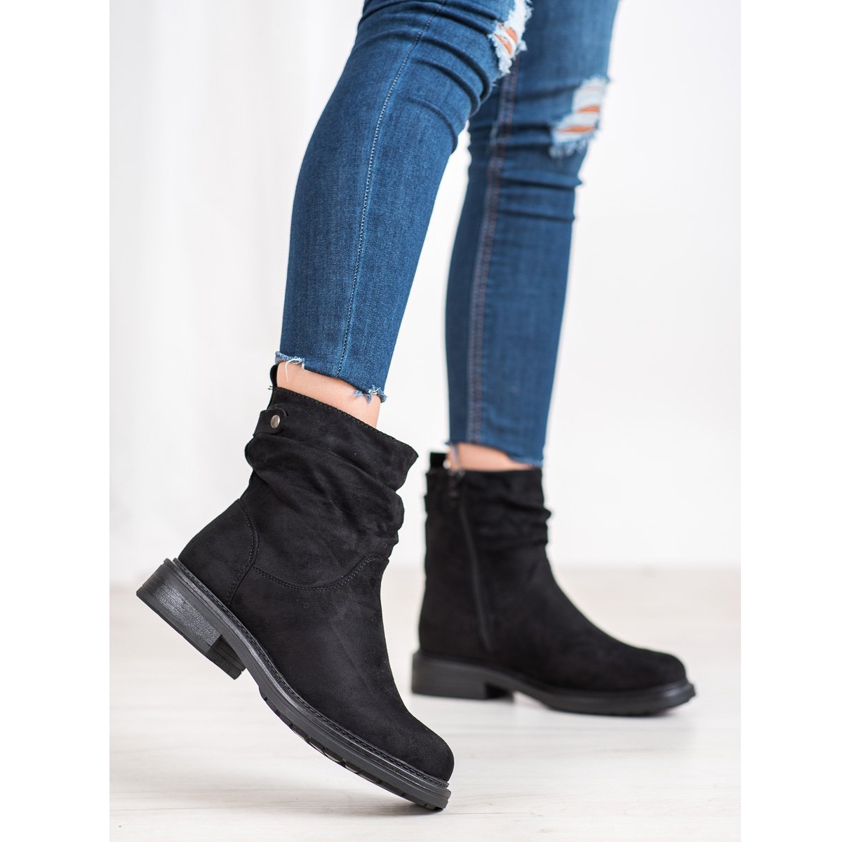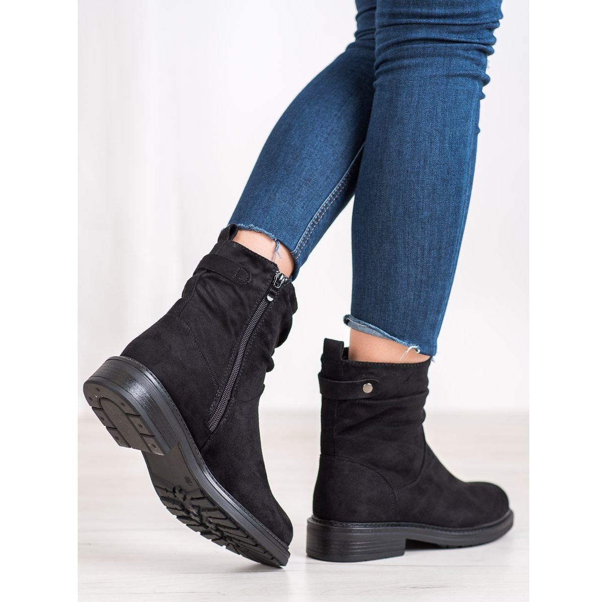 Apresentamos botas pretas de trabalho da marca J. Star, que combinam design moderno e funcionalidade. Estes botins femininos em camurça, confeccionados em material ecológico, serão a escolha perfeita para qualquer ocasião, principalmente no outono/inverno.