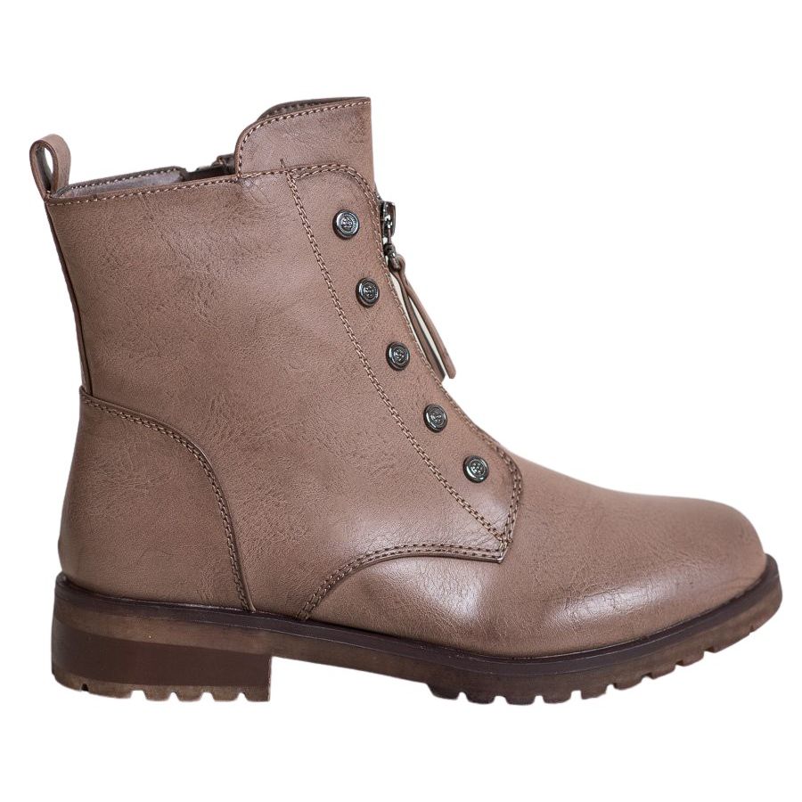 Os trabalhadores foram projetados para mulheres que valorizam conforto e aparência moderna. Graças à ponta redonda e ao salto plano de 3,5 cm, todos os pés ficam confortáveis com eles, mesmo quando usados por longos períodos de tempo. Um calcanhar seguro e rígido e uma parte superior na altura do tornozelo, com 13-14 cm de altura, adicionam estabilidade e confiança ao seu passo.