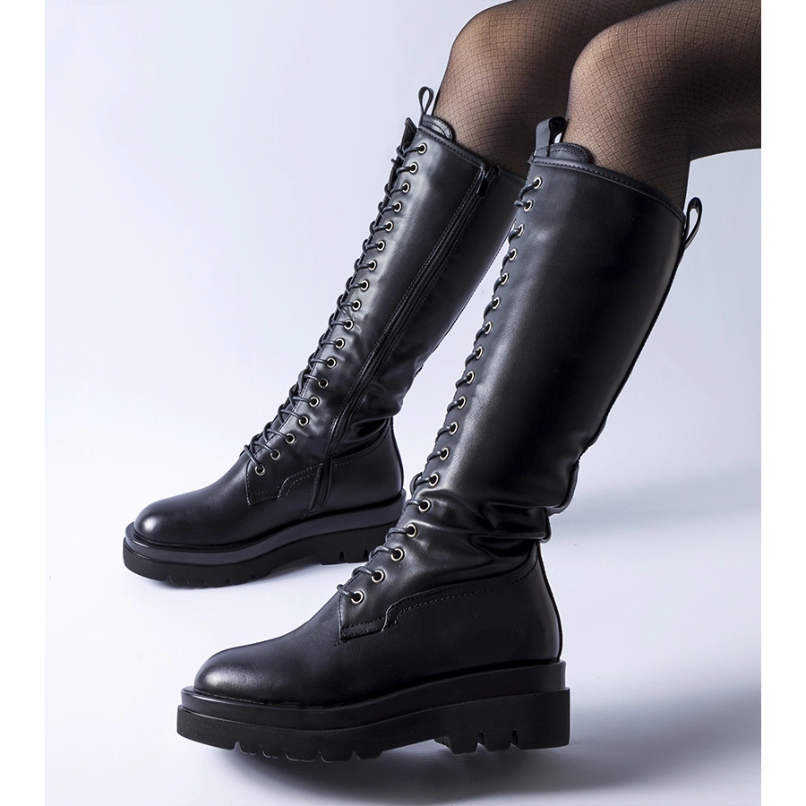 Os designers também cuidaram do visual elegante dos calçados de trabalho, evidenciado pela biqueira redonda e salto plano, conferindo-lhes uma elegância clássica. A parte superior na altura do joelho, além dos seus óbvios valores estéticos, também protege contra o frio.
