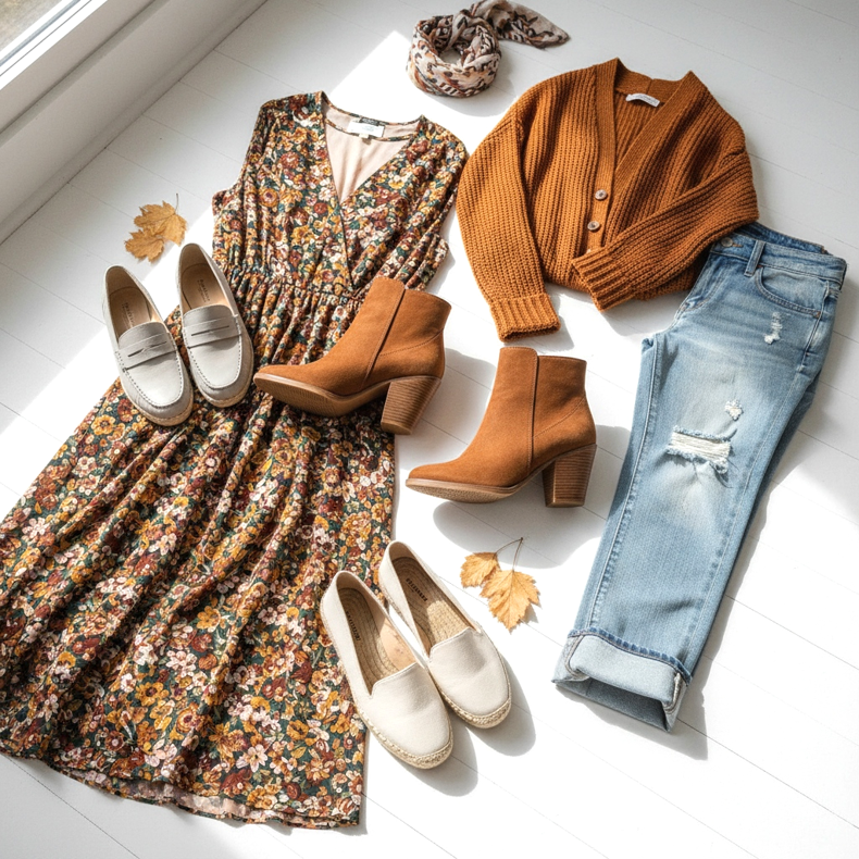 A transição do verão para o outono é o momento de passar das sandálias, chinelos e tênis de verão para sapatos mais cobertos. As botas são a escolha perfeita aqui - podem ser usadas com vestidos de verão e calças mais curtas, mas também com jeans e estilos mais outonais. As alpercatas são outra opção que combina tanto com looks de verão quanto de outono. Se o tempo ainda estiver quente, você pode usar sapatos leves. O segredo é ter pares que façam a transição entre as duas estações sem exigir uma reforma completa do guarda-roupa.