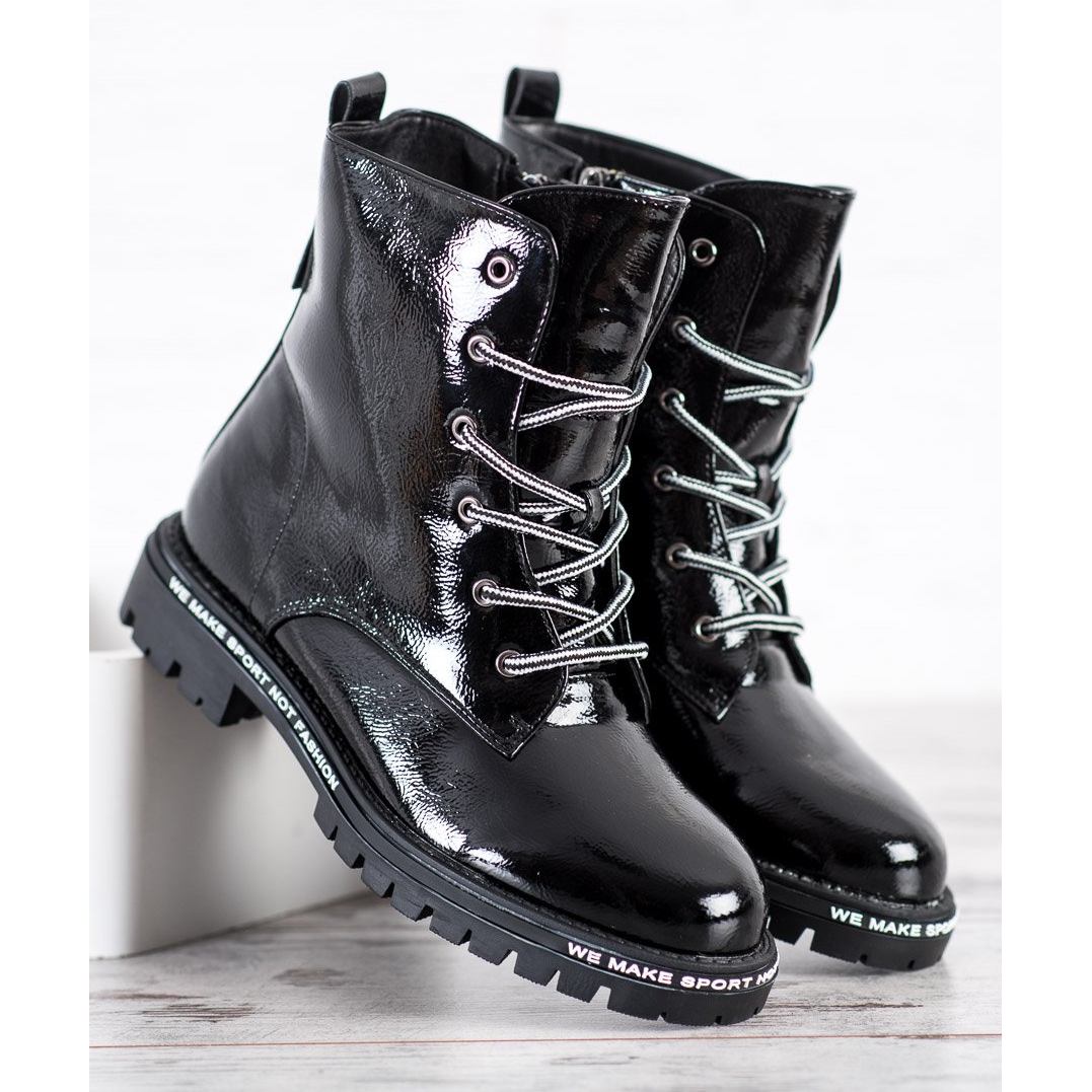 Os sapatos são fechados com cadarços e zíper, o que facilita a colocação e a retirada, e o salto plano de 3,5 cm permite que você desfrute de estabilidade e conforto o dia todo. A sola de plástico com banda de rodagem proporciona boa aderência tanto nas calçadas da cidade quanto em condições mais difíceis.