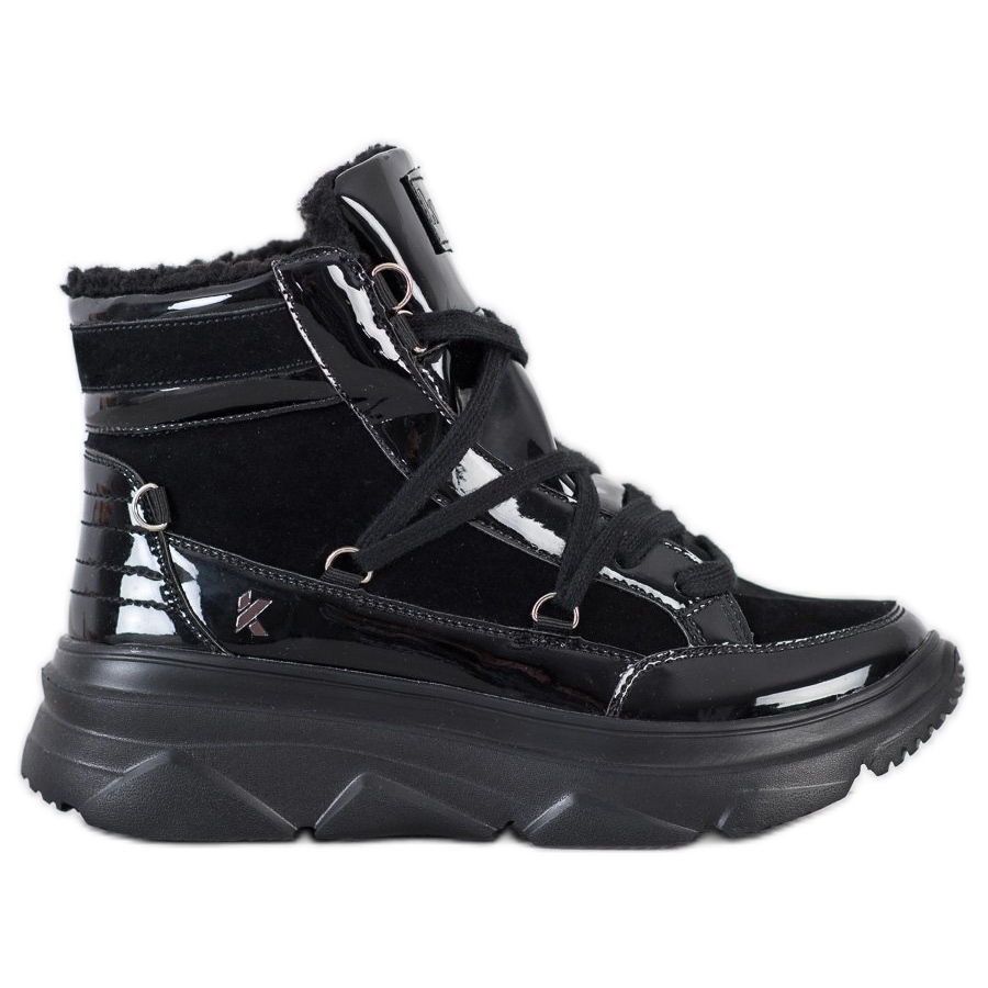 Descubra estilo e conforto únicos com botas pretas envernizadas da Kylie. Estas botas da moda, com a parte superior logo acima do tornozelo, são a escolha perfeita para o outono/inverno. Confeccionados em couro ecológico, encantam não só pela estética, mas também pela funcionalidade.