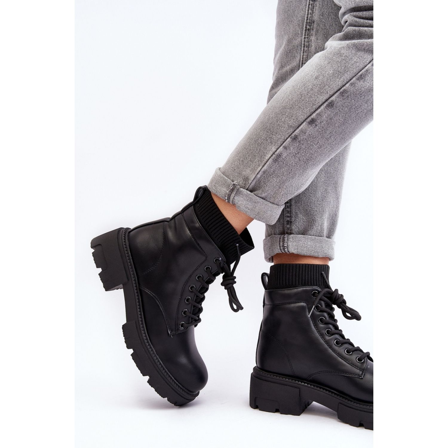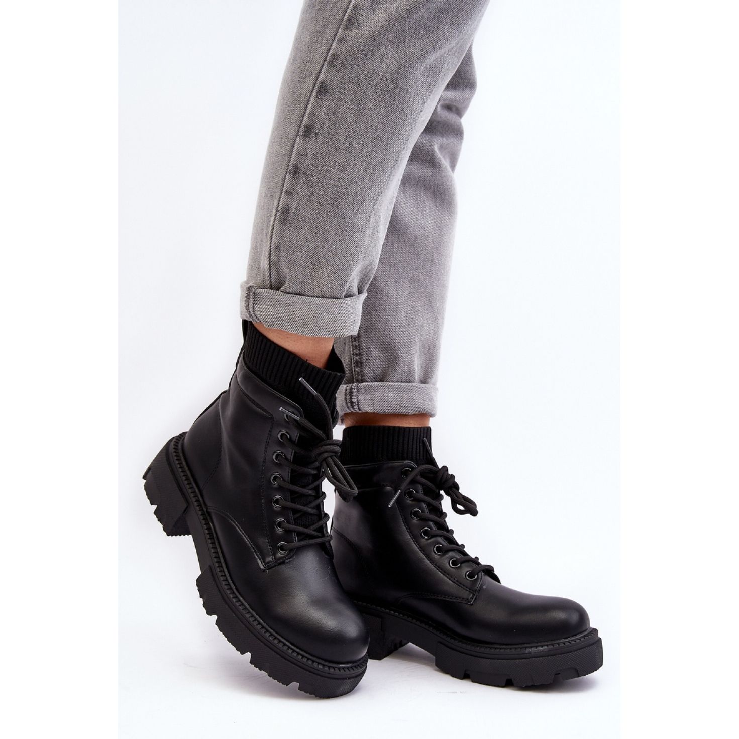 Os caçadores estão incorporados a um salto liso sólido de 5 cm de altura e uma plataforma de 3 cm, o que garante estabilidade e conforto em todas as condições. Com uma parte superior atingindo 15 cm, esse modelo protege perfeitamente os tornozelos, e o corte inserido com laço clássico na frente lhes dá personagem. Os dedos arredondados e o salto rígido enfatizam não apenas a aparência da moda, mas também o conforto de usar.