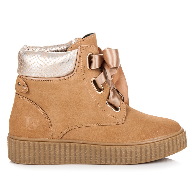 O seu design único em tons de castanho e bege adapta-se perfeitamente às tendências atuais e a parte superior do tornozelo proporciona um suporte adequado para o pé. Graças ao salto plano de 3,5 cm, estes sapatos não só são confortáveis de usar, mas também alongam opticamente as pernas, o que é uma vantagem adicional de qualquer estilo.