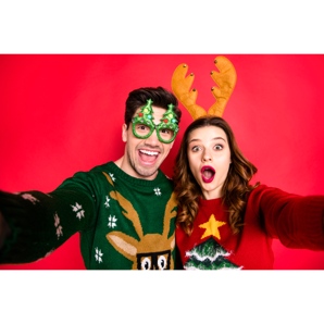 Os cavalheiros, por outro lado, devem optar por soluções comprovadas e optar por jeans simples em cores suaves com uma camisa cuidadosamente passada com tema de Natal. Eles irão complementar o todo perfeitamente sapatos formais clássicos. Se você quiser enfatizar ainda mais o clima natalino, coloque uma calça que termine logo acima do tornozelo e escolha meias coloridas de Natal. Você pode usar este conjunto brogues marrons ou Botas Jodhpur em estilo minimalista.